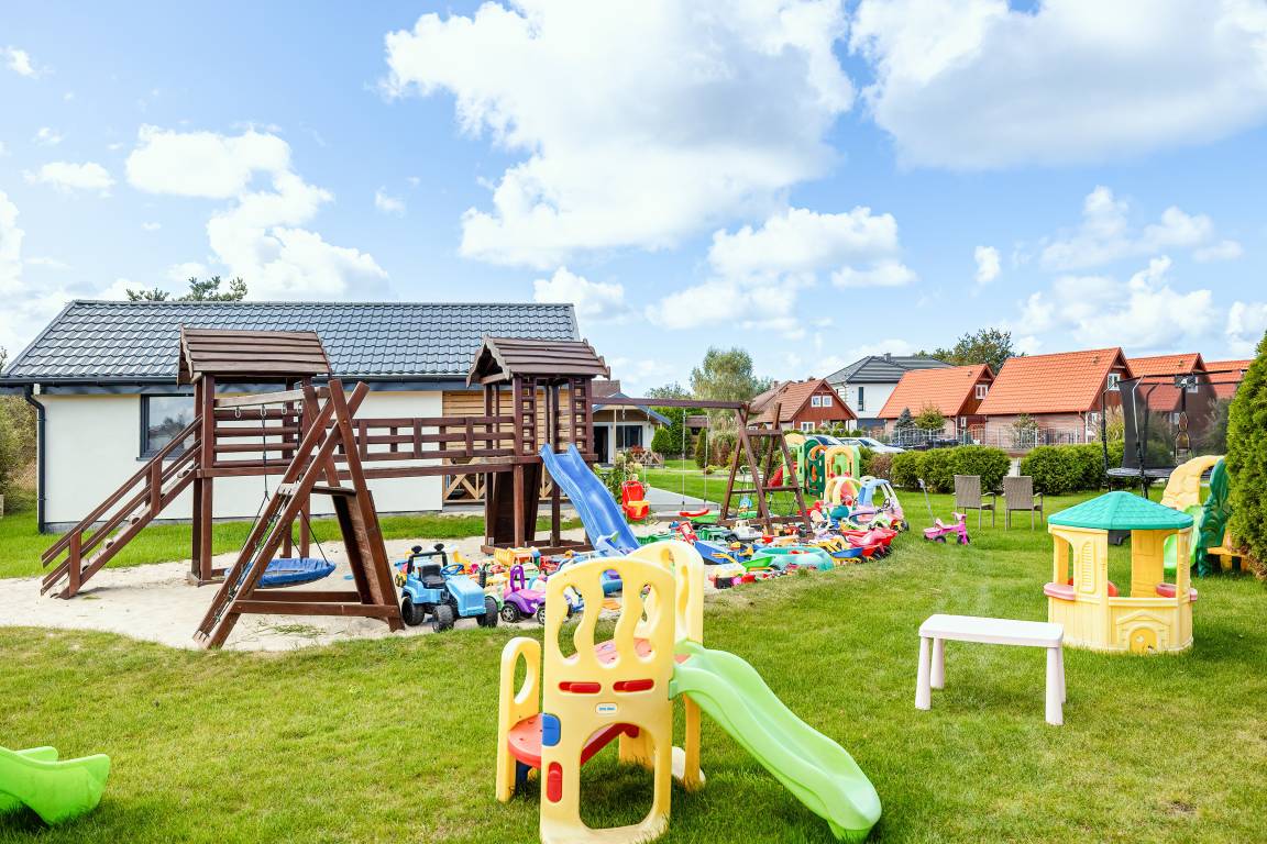 Haus: Sehr gepflegte Ferienhausanlage mit 7 Ferienhäusern auf einem stilvoll angelegtem 2600 qm großen Rasengrundstück, 2021 neu erbaut. In der Anlage: Kinderspielplatz mit Schaukel, Rutsche, kleinem Klettergerüst, Trampolin, Sandkasten. Fahrradverleih (nach Verfügbarkeit, Gebühr).