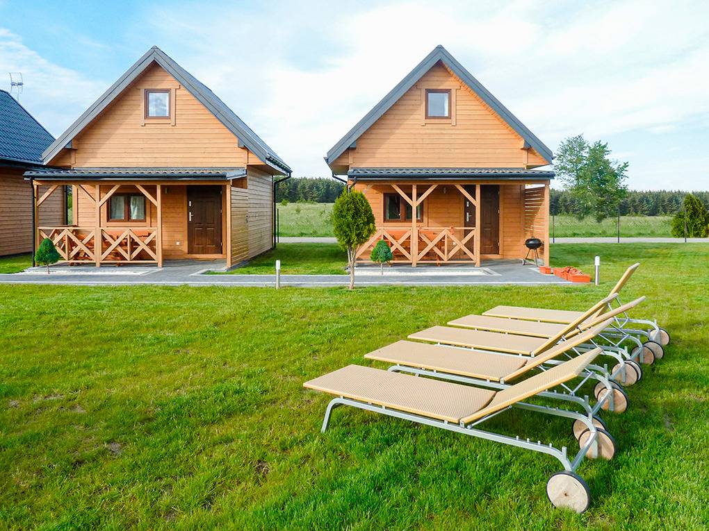 PL 85.15 Ferienhaus 2-8 Pers.: Komfortables 3-Zimmer-Ferienhaus mit 50 qm Wohnfläche über 2 Etagen. Parterre: Wohn-/Essraum mit Eckcouch (Ausziehcouch 2 Pers.), Flachbild-TV, Esstisch, Küchenzeile (2 E-Platten Induktionsfeld, Abzugshaube). Bad: Du, Wb, WC. Vom Wohnraum Holztreppe ins Dachgeschoss: Zwei 3-Bettzimmer mit Doppelbett, Einzelbett. Überdachte Terrasse mit Sitzmöbeln, Grill.