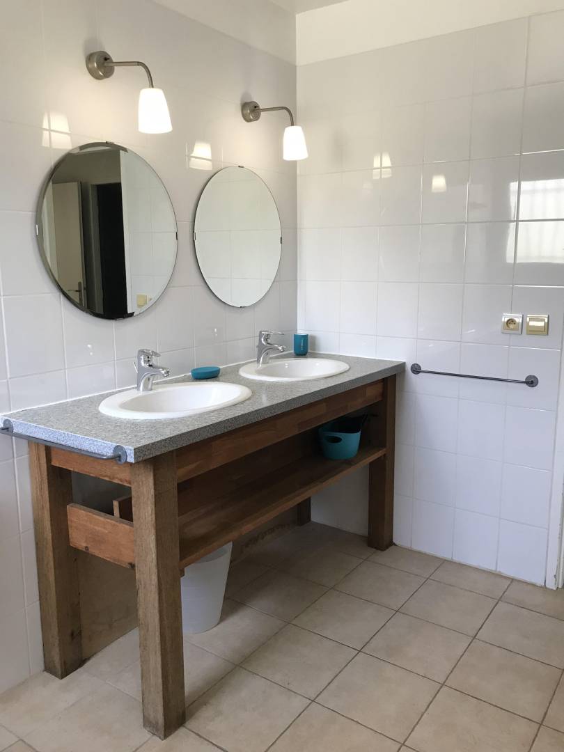 „En tant que personne handicapée physique, me déplaçant en fauteuil roulant électrique, j'ai beaucoup apprécié l'accessibilité de ce gîte, très bien conçu pour des personnes en fauteuil roulant. Les pièces sont vastes et lumineuses, la grande chambre est facile d'accès en fauteuil roulant, la salle de bains attenante est bien équipée: Douche à l'italienne, wc surélevés, lavabo bien placé. Les propriétaires ont même pensé à installer des pans inclinés pour passer plus facilement la porte d'entrée et la porte-fenêtre donnant sur une grande terrasse. Le tout est au calme, dans un milieu très agréable, proche de forêts. Nous y avons fait un très bon séjour. Je le recommande vivement.“