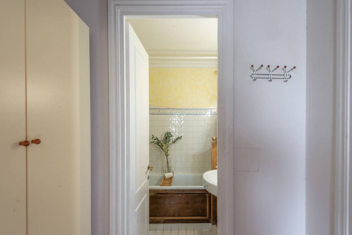 Badezimmer: Waschbecken, WC, Bidet, Badewanne, Dusche, Fön.
