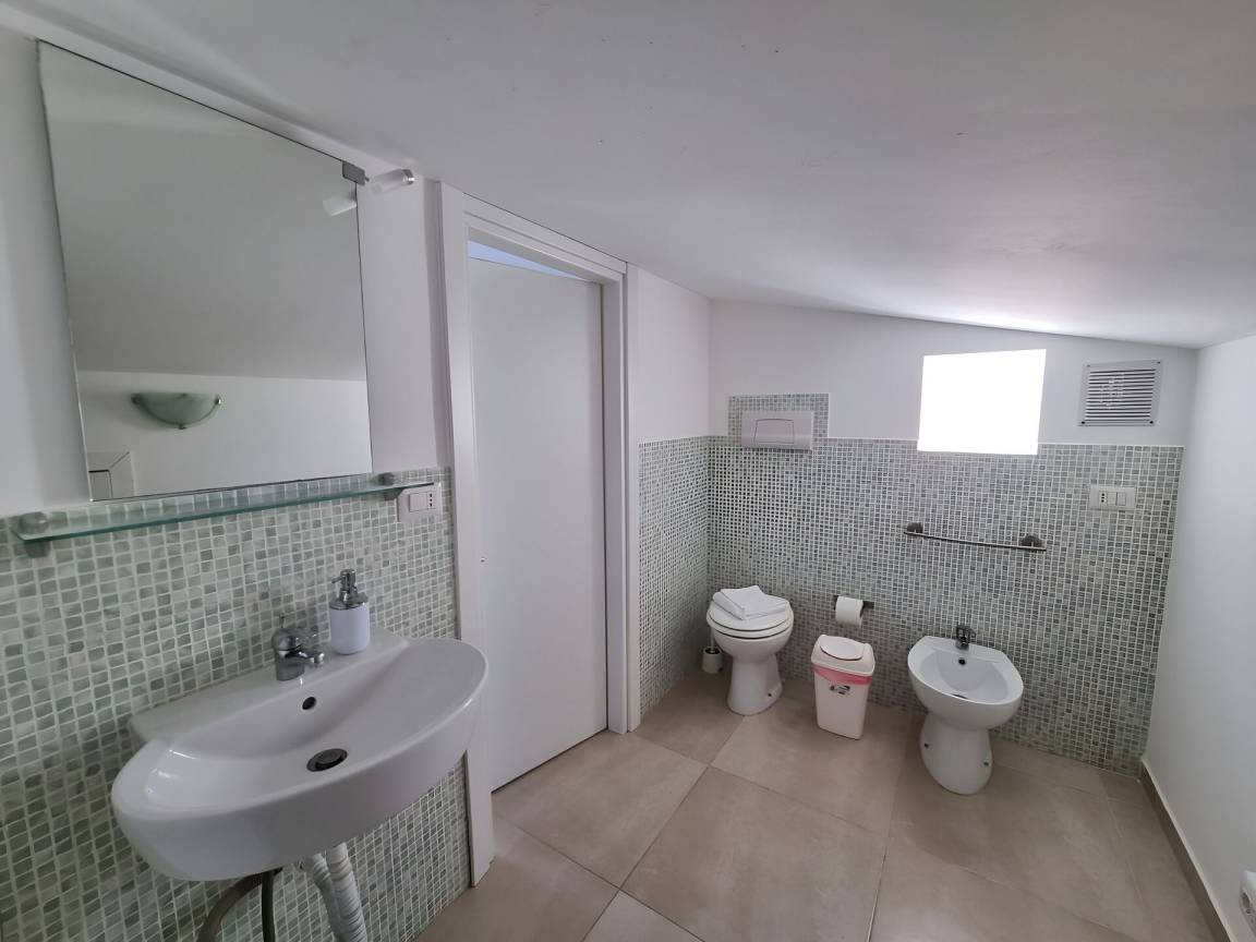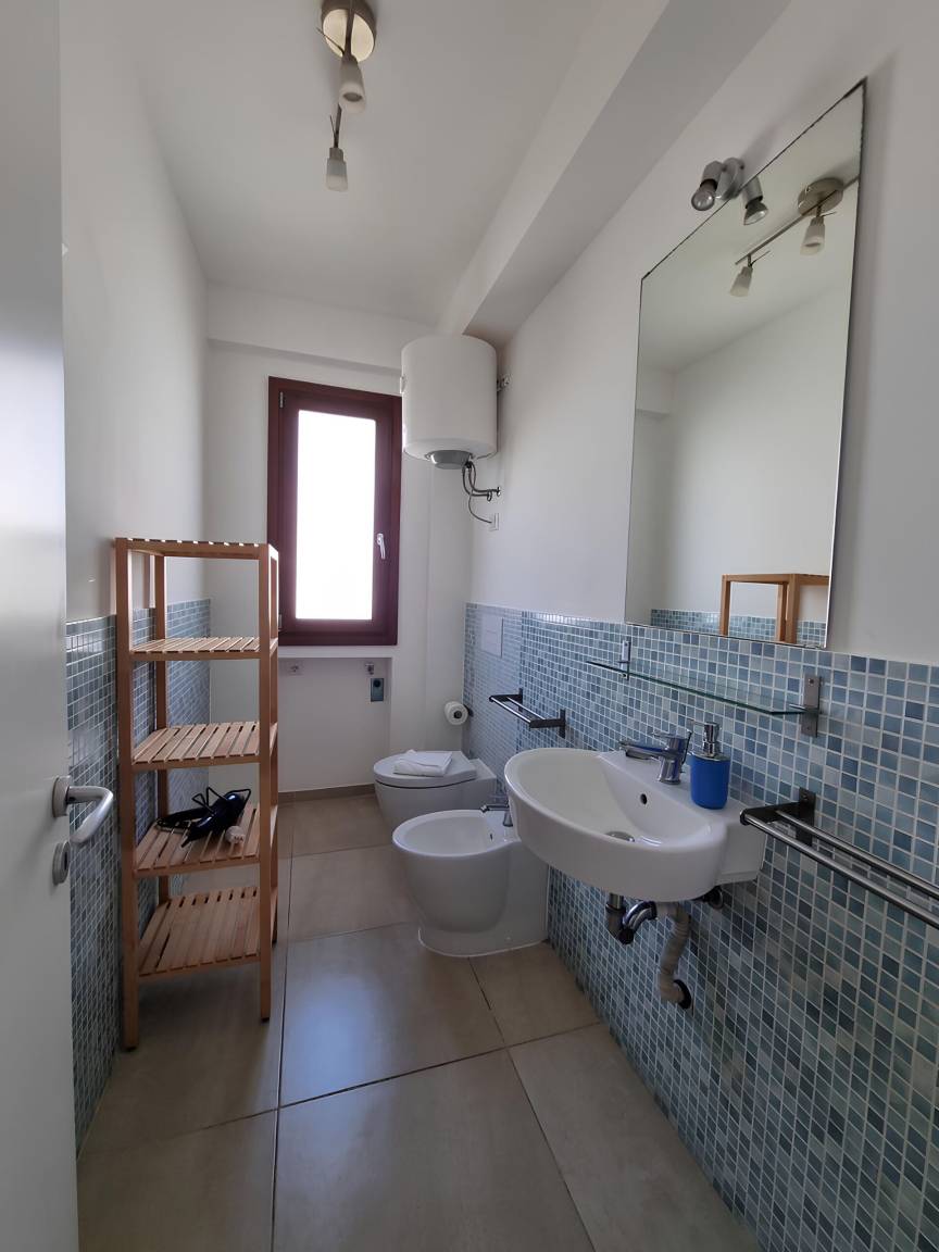 Badezimmer (4 m²): Waschbecken, WC, Bidet, Dusche, Fön, Waschmaschine.