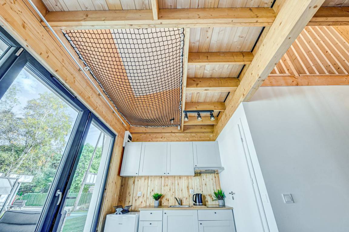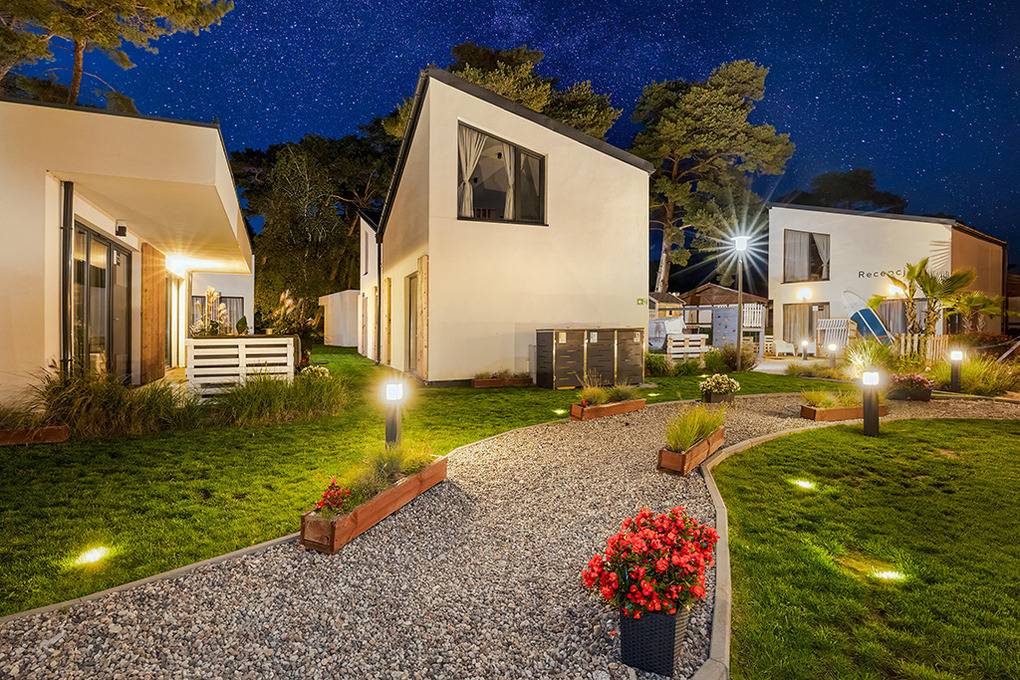 Haus: Kleine, schöne Ferienhausanlage mit modernen Häusern auf einem weitläufigem Rasengrundstück mit lichtem Baumbestand, in 2022 neu erbaut. In der Anlage: Rezeption, Kinderspielplatz mit Klettergerüst, Rutsche, Sandkasten, Trampolin. Gemeinsamer Grillplatz, Fahrradverleih.