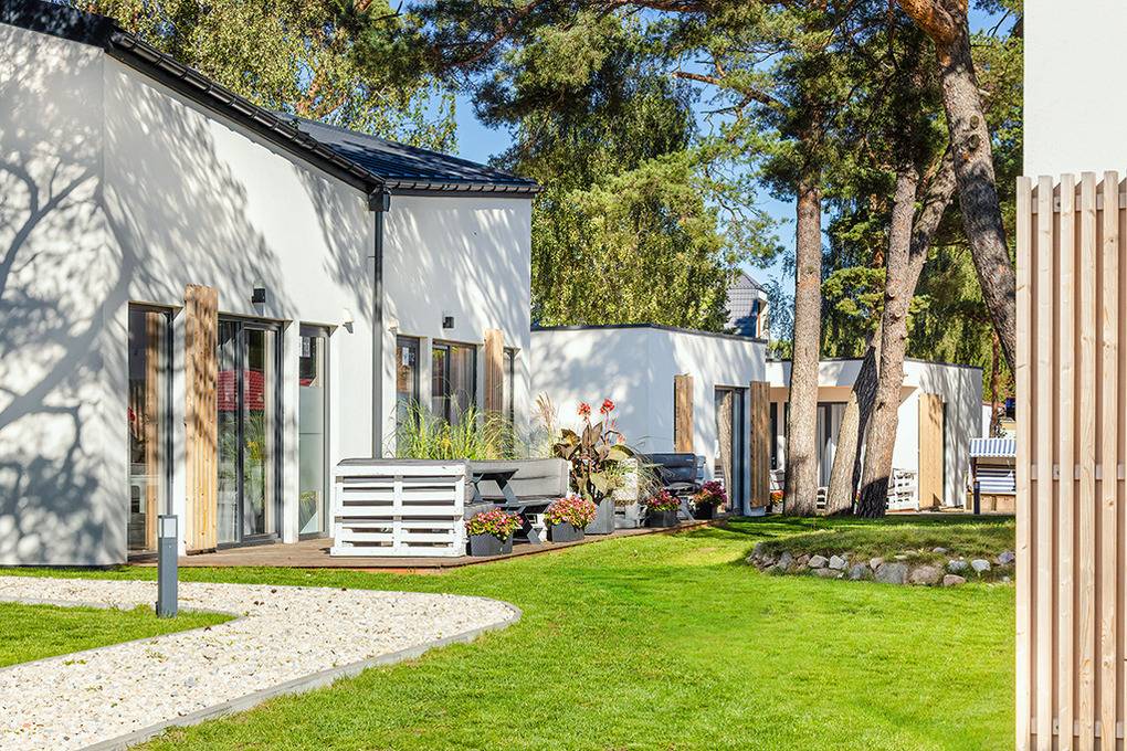 Haus: Kleine, schöne Ferienhausanlage mit modernen Häusern auf einem weitläufigem Rasengrundstück mit lichtem Baumbestand, in 2022 neu erbaut. In der Anlage: Rezeption, Kinderspielplatz mit Klettergerüst, Rutsche, Sandkasten, Trampolin. Gemeinsamer Grillplatz, Fahrradverleih.