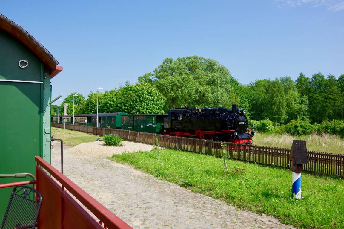 Der "Rasende Roland" schafft eine tolle Kulisse, wenn er im Sommer am Waggon gemütlich "vorbei schnauft" und Sie ihm zuwinken können.