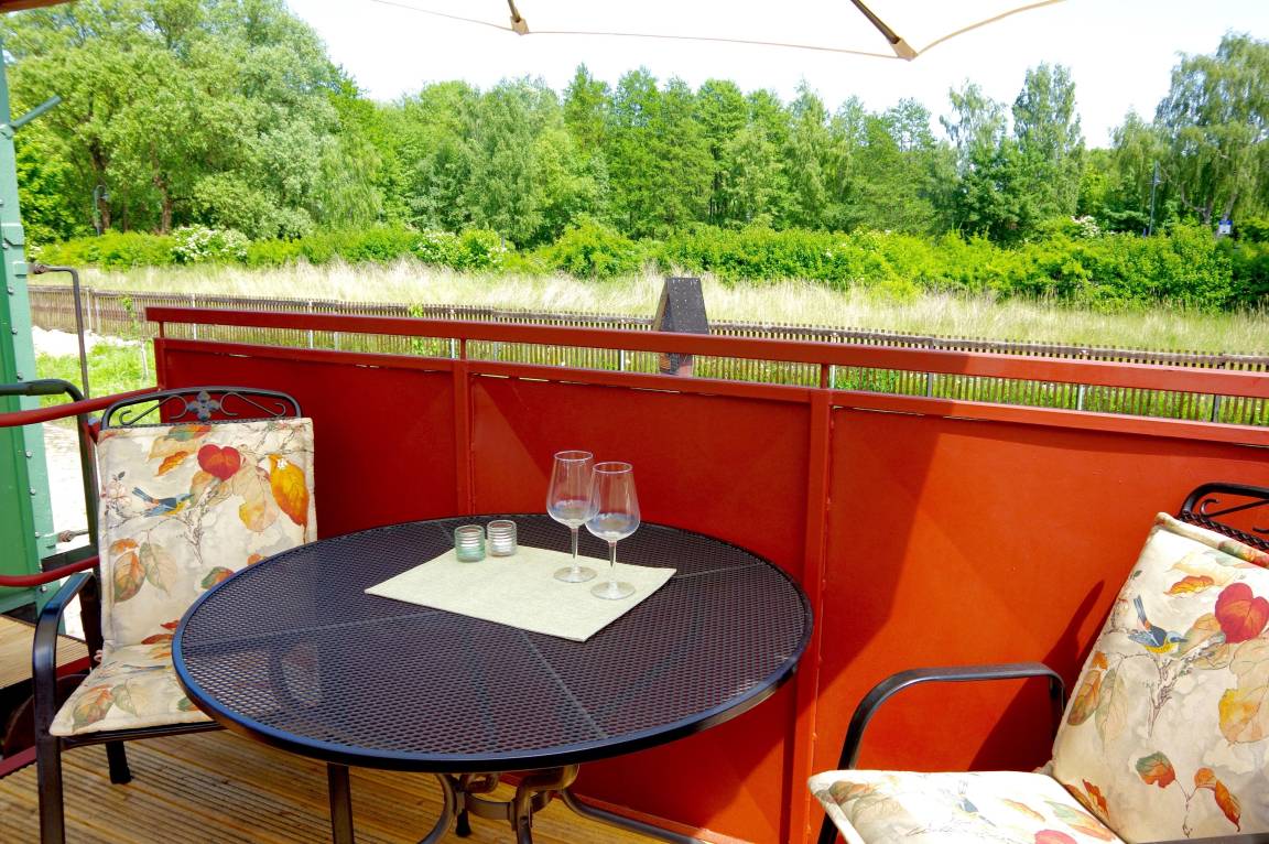Es erwartet Sie eine außergewöhnliche, moderne Einrichtung in einem alten Güterwaggon, der später als Unterkunft für die Gleisbauer der Deutschen Reichsbahn (DR) gedient hat.