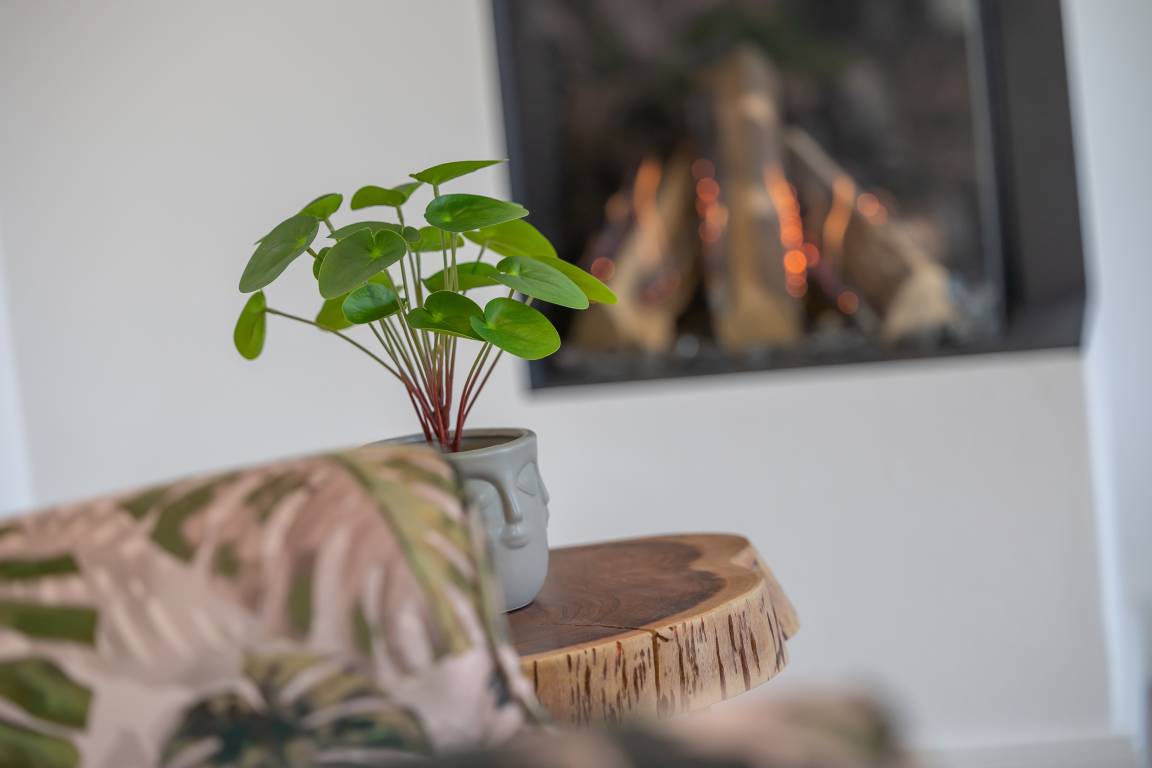 Kleiner Tipp: In der kalten Jahreszeit ist es herrlich entspannend, sich nach einem langen Spaziergang am Kaminfeuer des Gas-Kamins aufwärmen zu lassen.