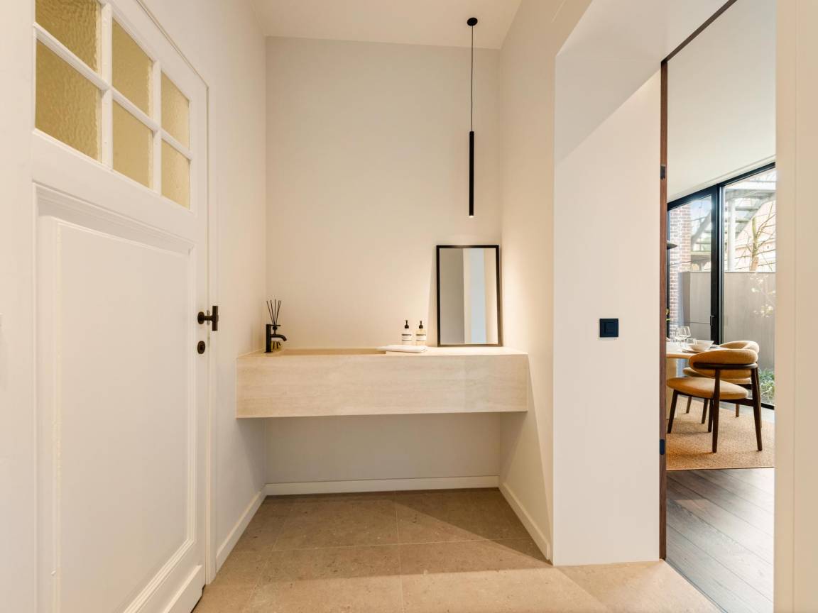 Hausbeschreibung : Die kürzlich renovierte Pastorie Liezele befindet sich auf einem charmanten Platz im Zentrum, ganz nahe der Kirche und dem alten Rathaus. Genießen Sie eine luxuriös eingerichtete Wohnung mit einer voll ausgestatteten Küche, einem gemütlichen Sitzbereich, zwei Schlafzimmern mit jeweils eigenem Bad und einem Büroraum. WLAN, Privatparkplatz, Fahrradabstellplatz und ein ummauerter Stadtgarten mit großem Terrassenbereich und überdachtem Sitzbereich mit Designkamin
