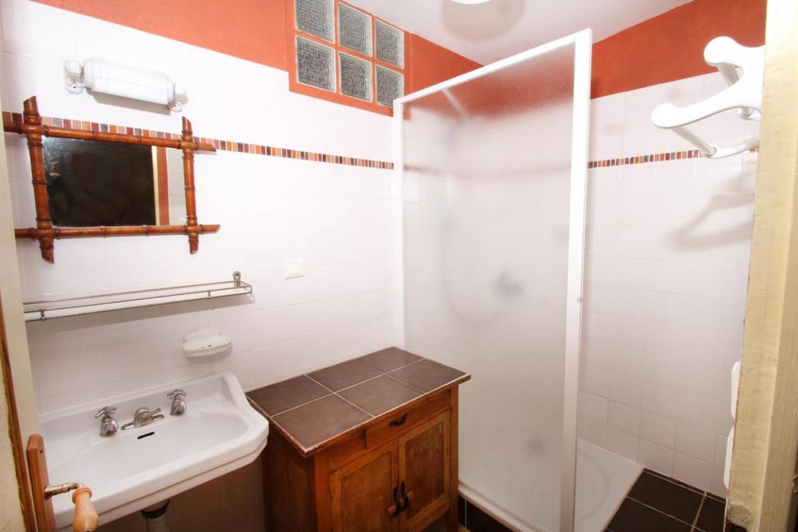 Erdgeschoss: Küche, Ess-/Wohnzimmer, Bad mit Dusche, separates WC. Obergeschoss: Zwischengeschoss (2 Betten 90 cm), 1 Schlafzimmer (1 Bett 140 cm). Zur Privatnutzung: 2 Terrassen, darunter eine überdachte, und 1 kleiner Garten. Parkplatz.