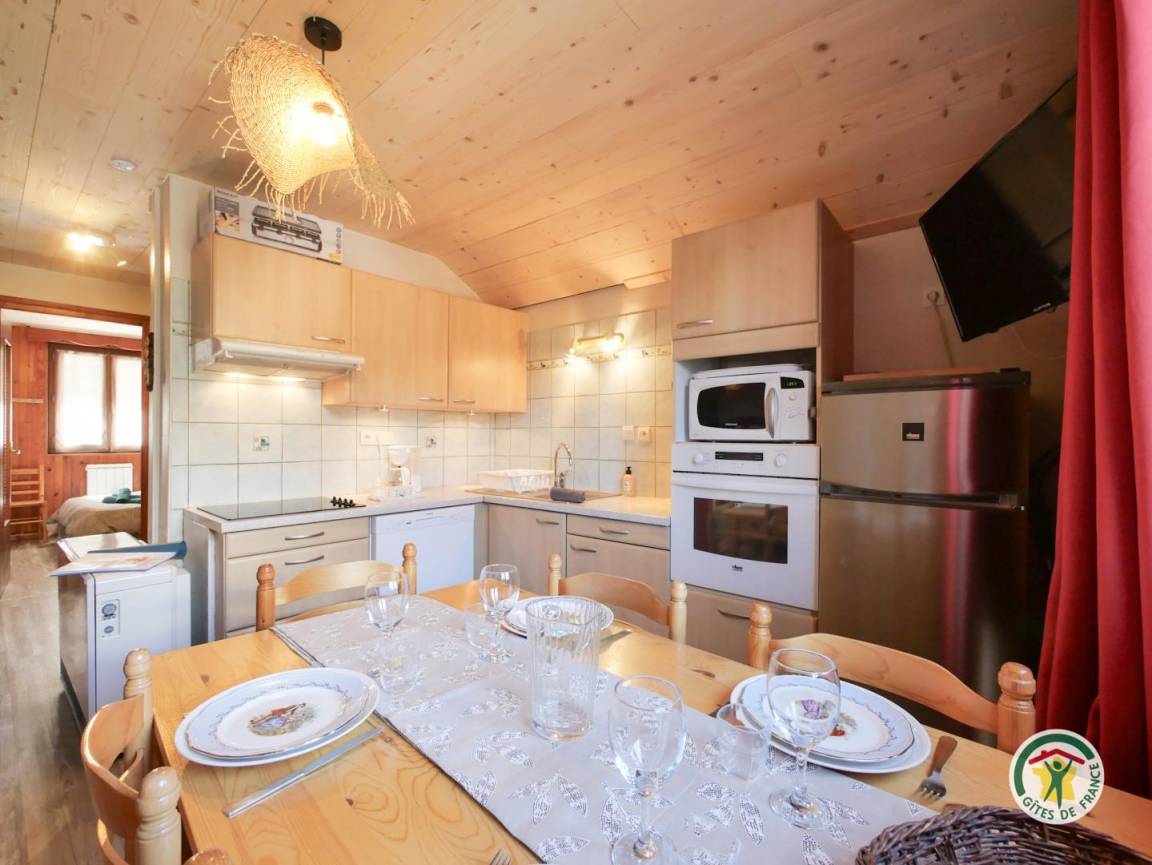 „L’accueil et la conciergerie sont au top. La localisation est bonne, proche du commerce principal pour les courses et du bas des pistes de 1400.L’appartement est globalement fonctionnel et assez pratique. L’atout est lié aux 2 chambres avec lits doubles. Quelques bémols: La literie mériterait d’être renouvelée, le confort étant assez moyen. Il faudrait ajouter une chaise car il n’y a que 3 chaises et des tabourets en plus. Il serait pratique d’ajouter une petit multiprise dans la cuisine pour pouvoir brancher la cafetière, la bouilloire et le grille pain en même temps. La cuisine est globalement bien équipée et le service à raclette est appréciable !Nous avons globalement passé un bon séjour !“