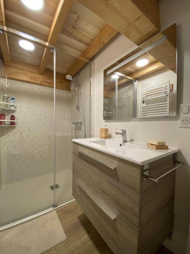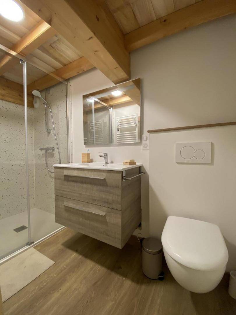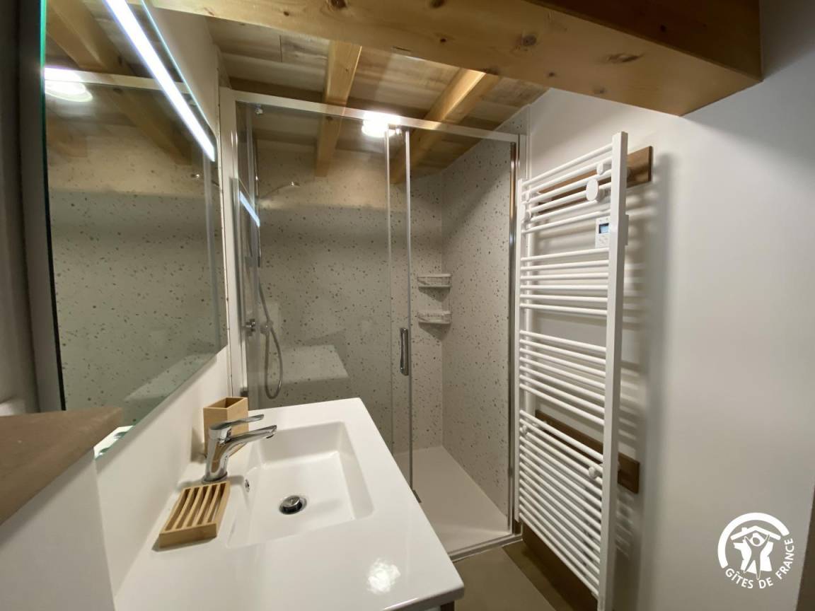 „Très joli, très bien car salle à manger et salon adapté pour 6 adultes. Pour votre information dans un sens positif d'améliorations: J'aurais aimé trouver à disposition condiments, papier WC (1 seul rouleau par WC): Nous en avons trouvé dans la remise, car nous avons dû repartir en ville à 19h 00 pour achat de vinaigrette et huile (que j'ai laissé à disposition) et sel.L'étage est exigûe et ne conviendrait pas me semble t il à des couples qui apprécient le confort et qui sont de taille grande. Manque ouverture fenêtre étage. Nous avons fonctionné chauffage éteint car l'appartement est bien isolé. Pour info du propriétaire: Sur le seuil de cabine de douche, l'eau passe à l'extérieur malgré les belles portes vitrées. merci encore“