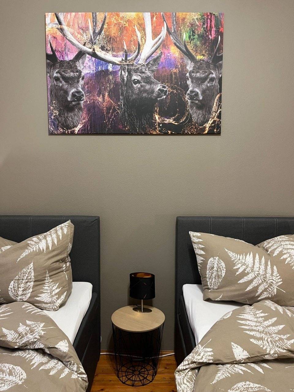 Wir bieten in unserem Apartment RAPHAEL am Schloss Wald in der Perschlingtalstr. 35, 3144 Pyhra-Wald, südlich der Landeshauptstadt St. Pölten (15 Minuten), Wien (45 Minuten) und Krems / Wachau (25 Minuten) ein Zweizimmer-Apartment mit 2 Boxspring-Einzelbetten sowie Riesen-Schlafcouch an.