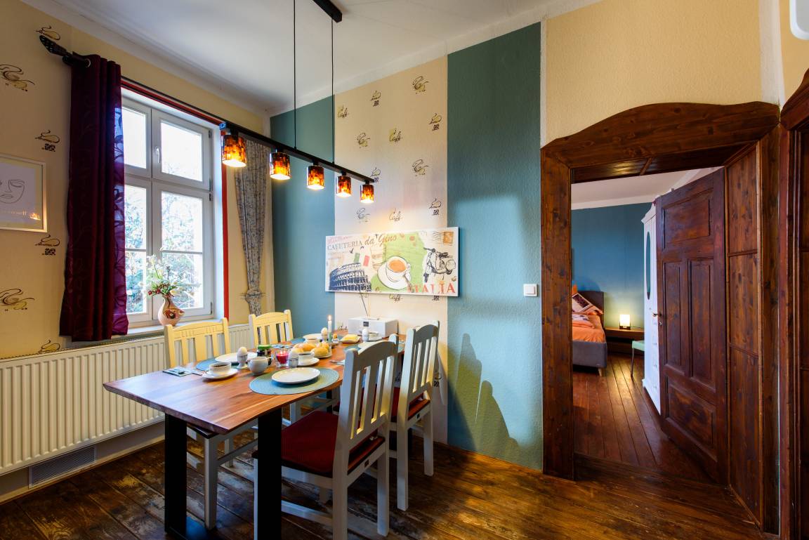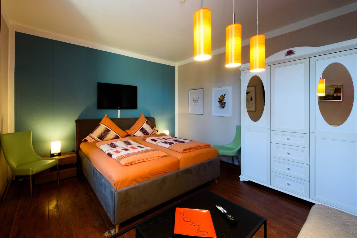 Es erwarten Sie eine Wohnungen, die entsprechend geprägt ist vom Ambiente der alten Zeit und dennoch allen Komfort unserer Neuzeit bieten. All unsere Zimmer strahlen eine farbenfrohe Freundlichkeit aus, die nicht vergessen lässt, dass man sich im Urlaub befindet. Wir wollen Ihnen nicht nur eine Herberge bieten, um unsere 1000-jährige Fachwerkstadt kennen zu lernen, sondern auch ein wohliges Gefühl an eine besondere und interessante Unterkunft vermitteln.