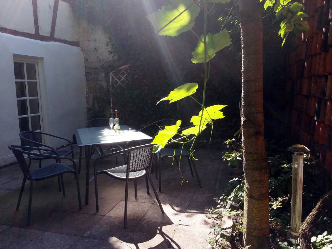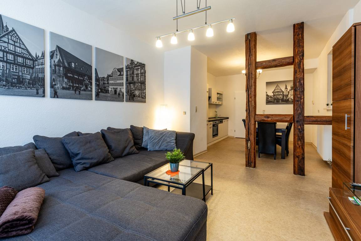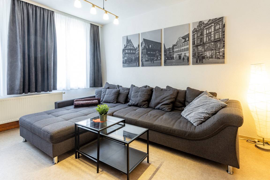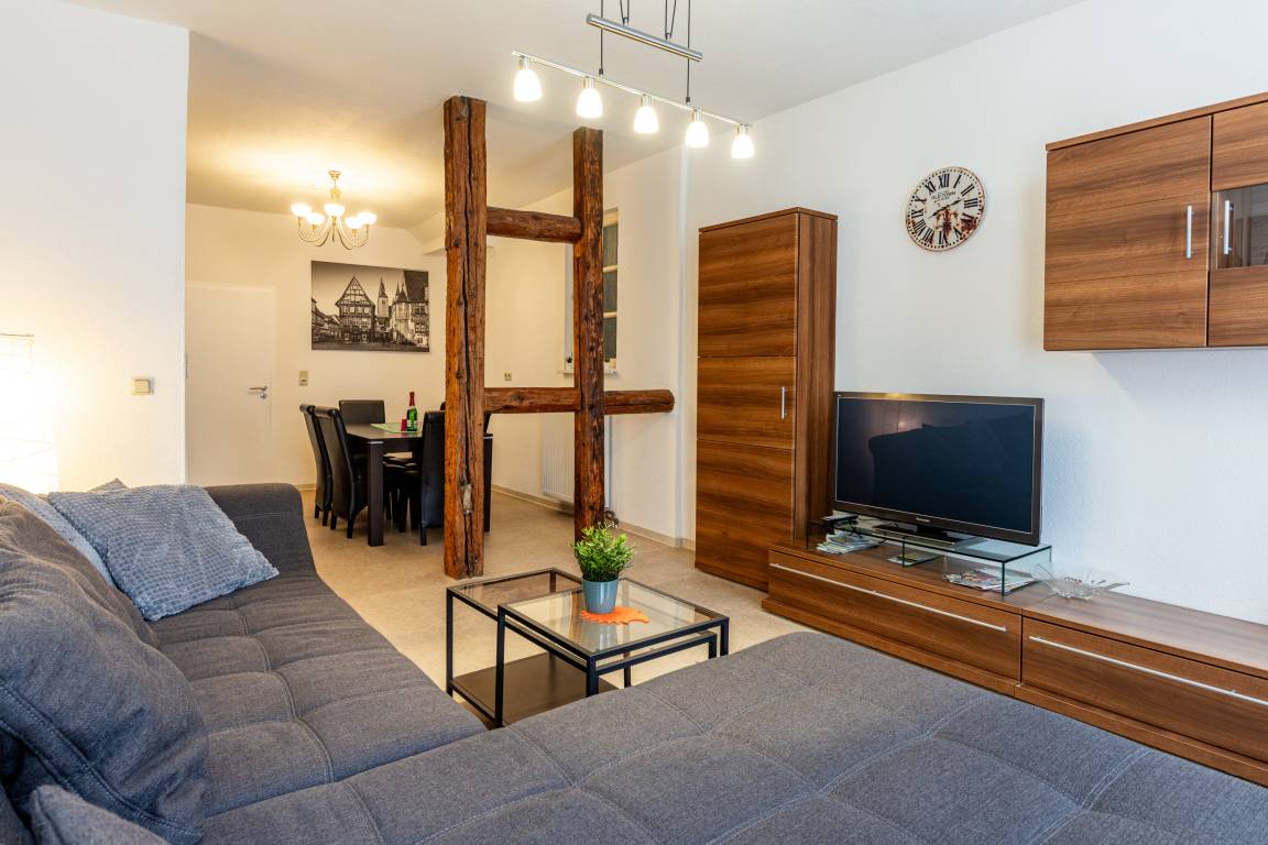 Unsere Ferienwohnung "Zum rost'gen Potte" ist zwar ein echtes Denkmal, trotzdem modern eingerichtet und wurde 2021 frisch renoviert. Im Schlafzimmer entspannen Sie auf einem breiten Boxspringbett - Ihr Gepäck verstauen Sie bequem im separaten Kleiderschrank. Das 2. Schlafzimmer verfügt über 2 Einzelbetten im Himmelbett-Stil. Im Wohnzimmer wartet eine moderne ausziehbare Wohnlandschaft auf Sie - genießen Sie Ihren Abend bei einem guten Glas Wein und einem Buch oder machen Sie sich einen gemütlichen Fernsehabend vor unserem Flachbild-TV! Die Wohnlandschaft kann bei Bedarf auch in eine dritte Schlafmöglichkeit verwandelt werden. Zusätzlich gibt es im Wohnzimmer einen separaten Eßbereich. Die modern eingerichtete Küche verfügt über einen Herd mit Ceranfeld, Backofen, Spülmaschine, Kühlschrank mit Tiefkühlfach, Wasserkocher, Kaffeemaschine und Toaster. Im Bad finden Sie Dusche, Badewanne, Waschbecken, Waschmaschine und WC. Die Ferienwohnung verfügt über kostenloses W-Lan. Fahrräder können in der Hofdurchfahrt sicher und überdacht abgestellt werden.