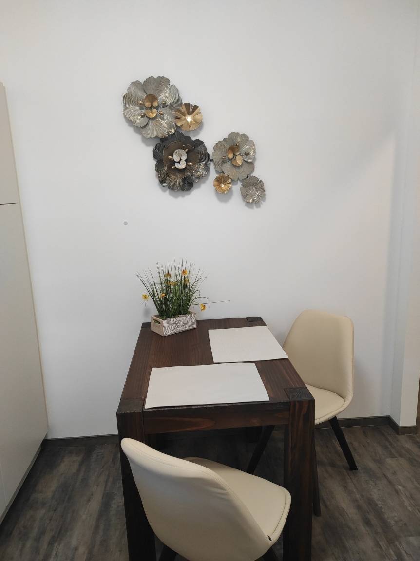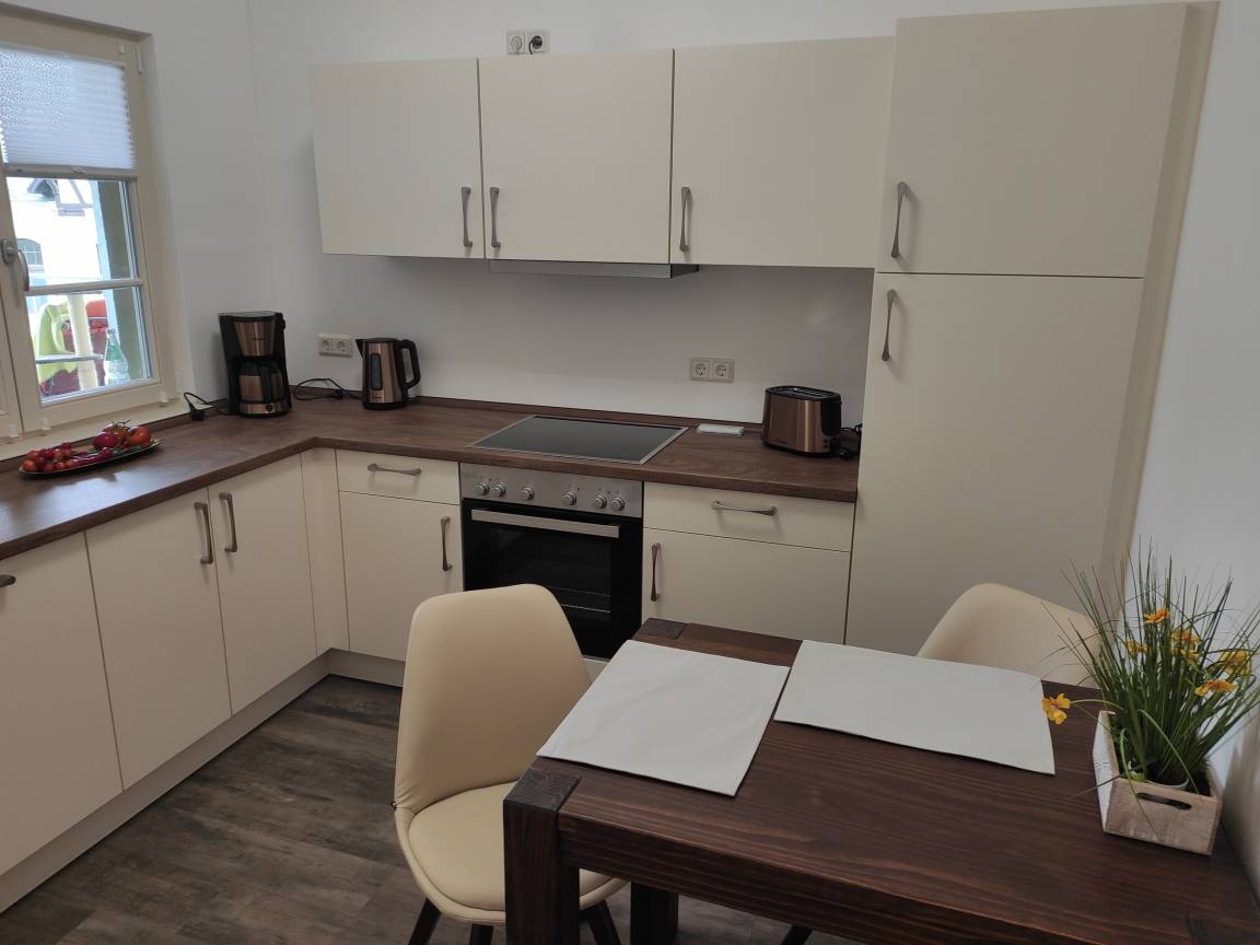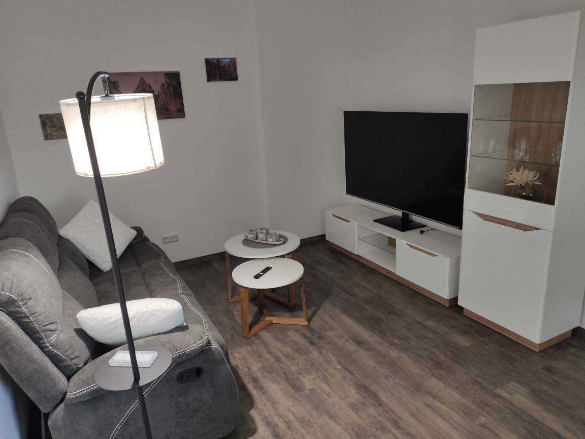 Die Ferienwohnung befindet sich auf der zweiten Etage eines ruhigen Mehrfamilienhauses welches für altersgerechtes Wohnen errichtet wurde. Sie besteht aus einem schicken Wohn- sowie Schlafzimmer und einer Küche, die mit allem ausgestattet ist was Sie für Ihren Aufenthalt benötigen. (Backofen, Mikrowelle, Kaffeemaschine, Geschirrspüler, Wasserkocher, Toaster etc.).