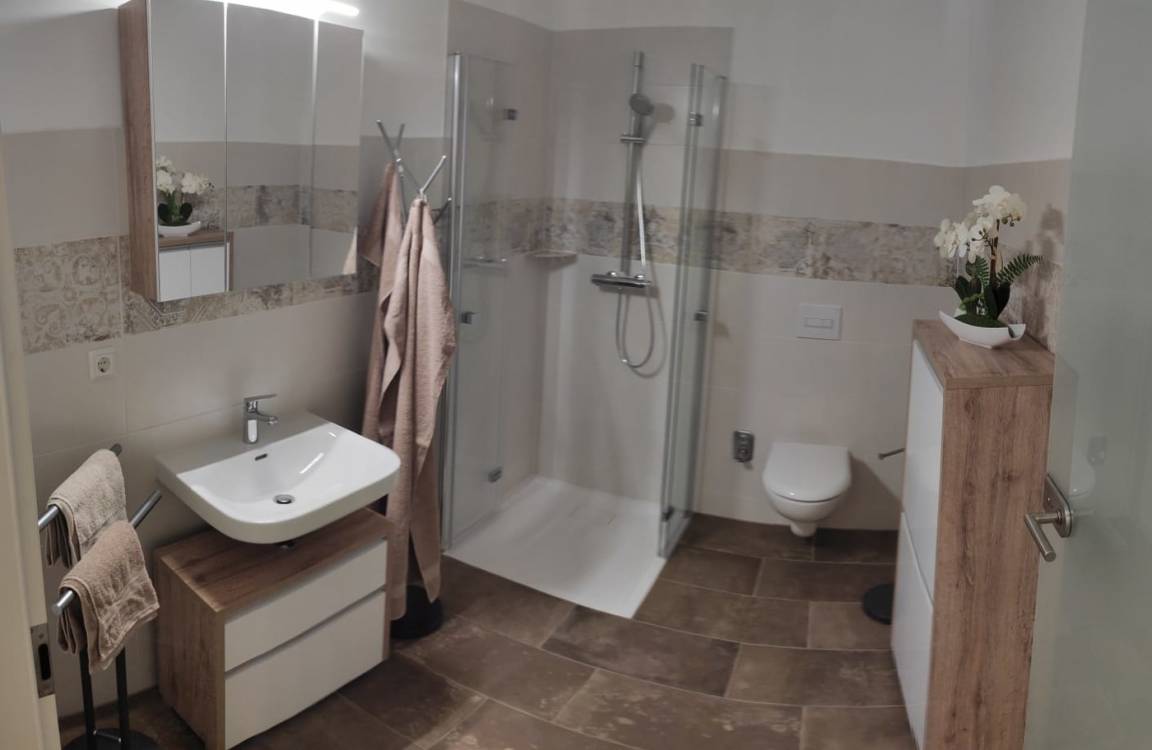 Die Ferienwohnung, insbesondere auch das Bad, sind altersgerecht und damit auch barrierefrei eingerichtet und verfügt über eine Fußbodenheizung.