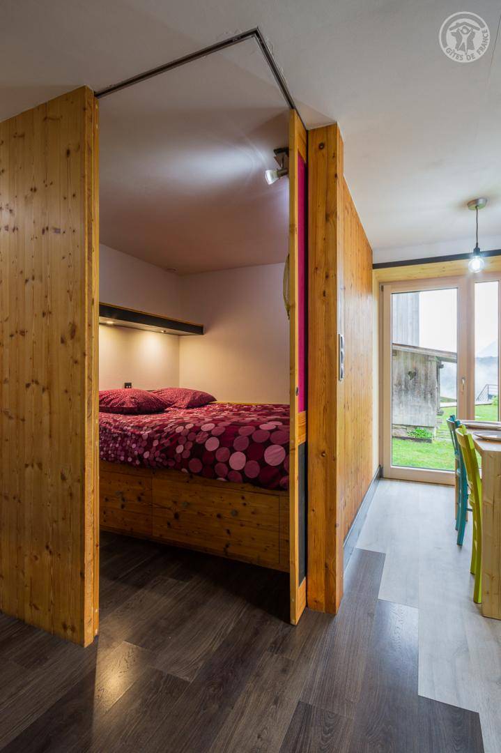 Haus bestehend aus 2 völlig unabhängigen Gites (keine gegenüberliegenden). Die Gîte 2010 befindet sich im Erdgeschoss und ist nach Westen ausgerichtet mit: Wohnzimmer-Küche-Lounge, 2 Schlafzimmer "Kabinen" (2 Etagenbetten 90 x 200 / 1 Doppelbett 160 x 200 cm). Duschraum (Dusche mit WC). Angrenzender Nebenraum für Sportgeräte oder die Aufbewahrung Ihrer Koffer. Privater Garten mit freiem Blick auf die Berge.