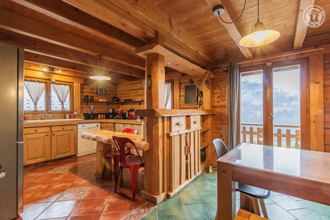 „Chalet très spacieux très bien équipé qui respire le bois massif qui laisse entrer le soleil et une vue superbe, qui invite à de bonnes tablées à des nuits confortables et reparatrices et qui nous donne beaucoup de regrets à quitter !“