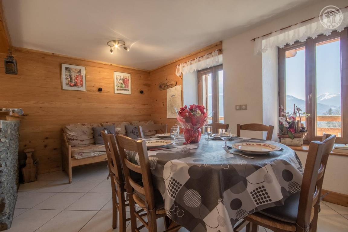 Unabhängiges Haus. Erdgeschoss (Zugang über etwa fünfzehn sanft abfallende Stufen): Wohnküche, Wohnzimmer (2 Einzelausziehbetten), 3 Schlafzimmer (1 Einzelbett / 1 Doppelbett, 1 Einzelbett / 1 Doppelbett), 2 Duschen Zimmer (Dusche/Dusche + WC). Balkon, Grundstück. Abstellraum vorhanden. Skifahren Arêches-Beaufort 20 km, Les Saisies 27 km.