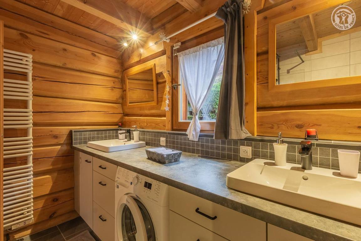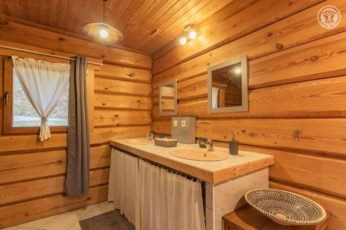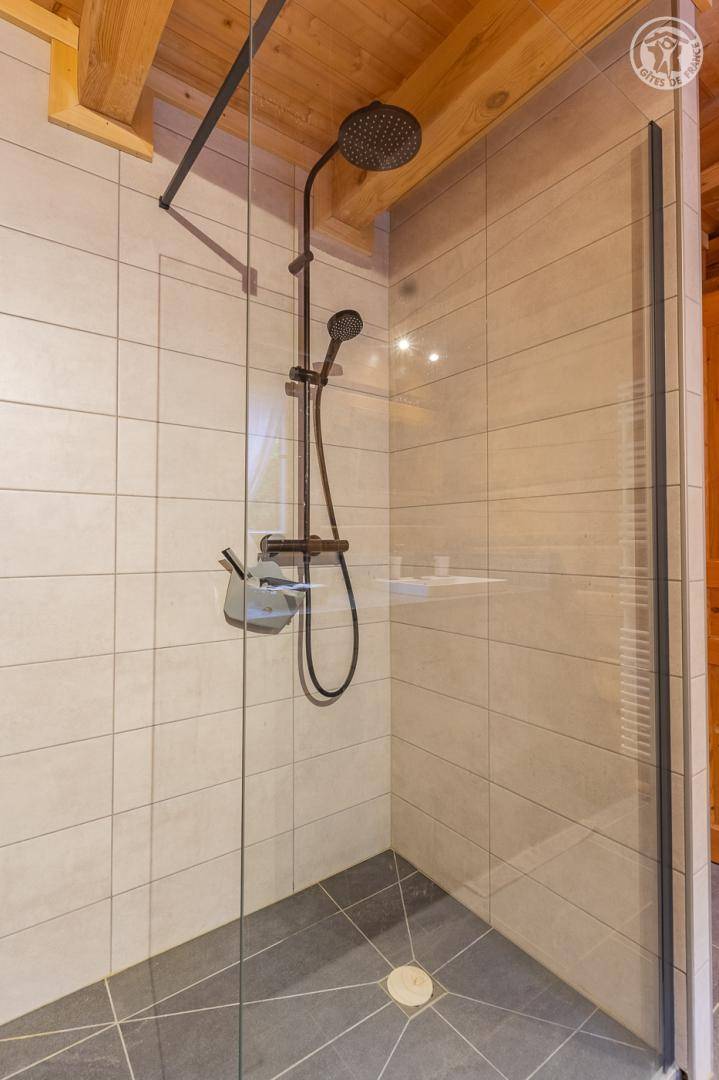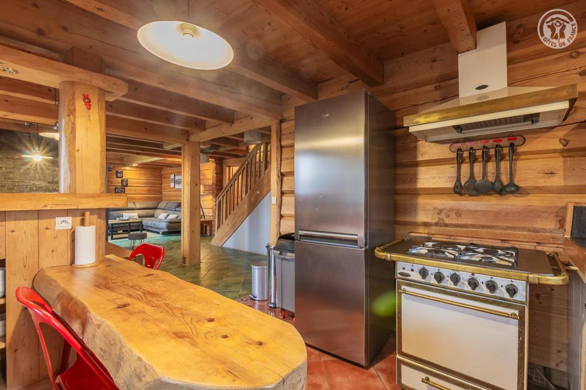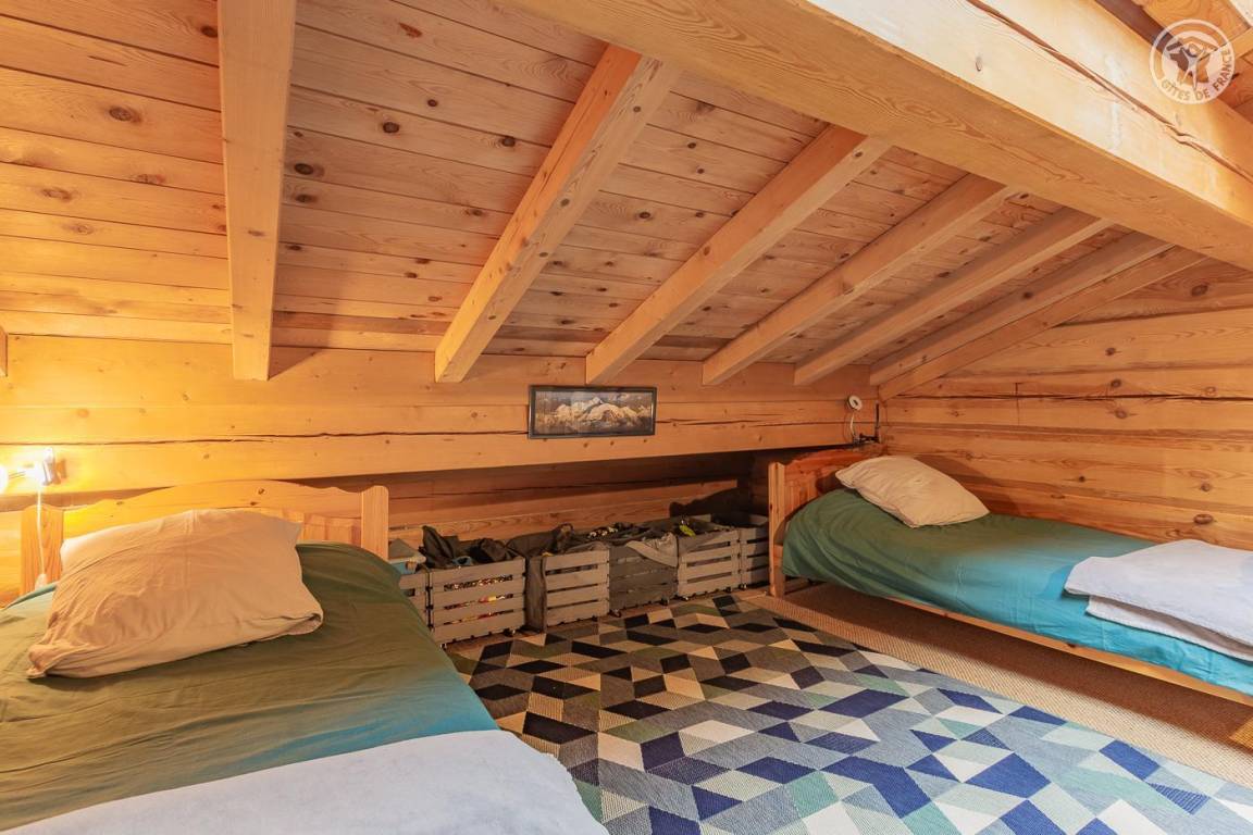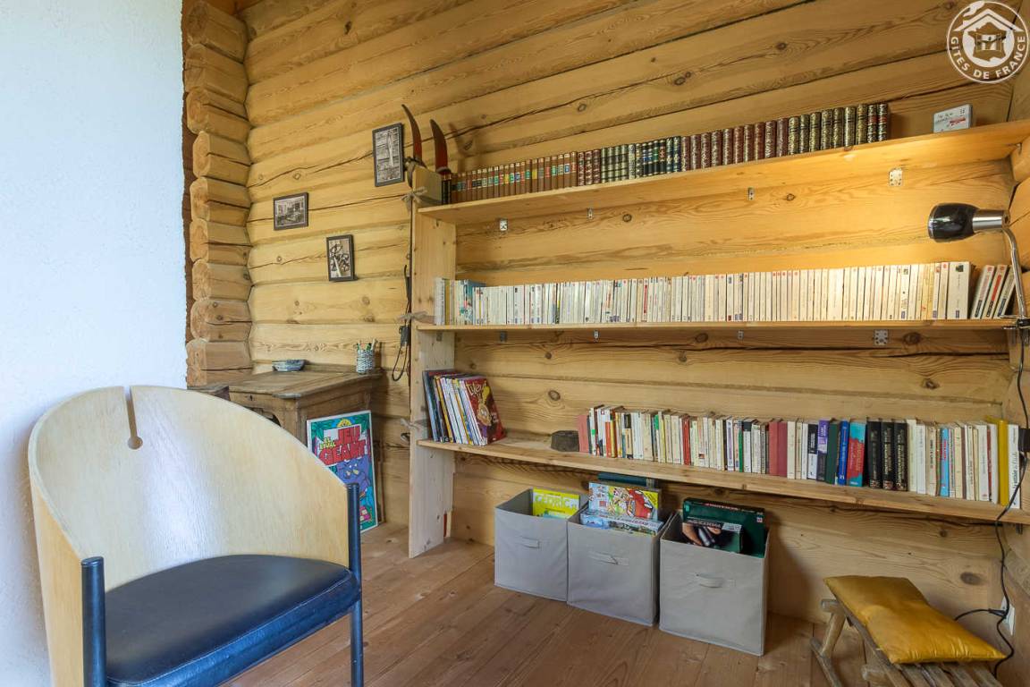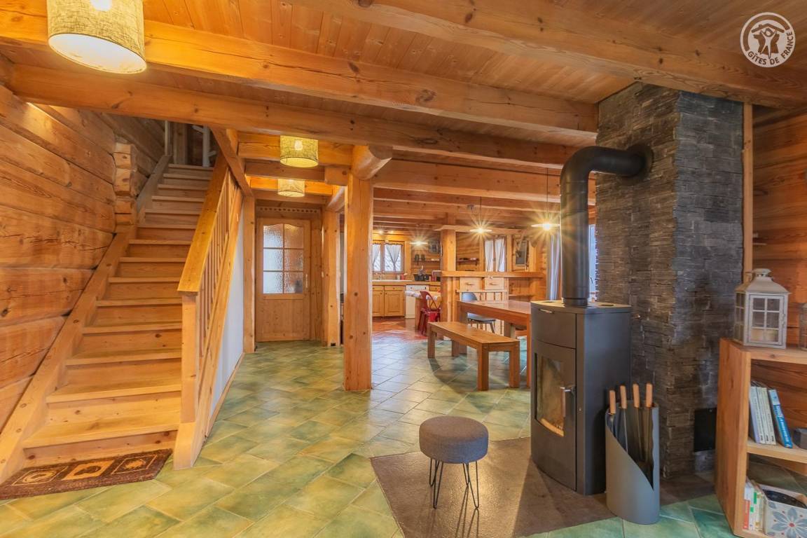Blockhaus mit einer schönen Fläche von 150 m². Erdgeschoss: Küche-Wohnzimmer-Wohnzimmer in Südlage mit freiem Blick ins Tal. 1 Doppelzimmer (1 Doppelbett). Badezimmer (Dusche). Separates WC. Obergeschoss: Mezzanine offen zum Wohnzimmer / Lesebereich. 3 Schlafzimmer (2 Schlafzimmer mit 1 Doppelbett / 1 Schlafzimmer mit 4 Einzelbetten 90x190cm). Fußbodenheizung durch Sonnenkollektoren (zusätzlicher Elektroboiler). Tröster. Bettwäsche inbegriffen und Betten bei der Ankunft bezogen. Bettwäsche wird gestellt. Badezimmer (Badewanne) mit WC. Geschützte Terrasse. Garten . Privater Parkplatz auf dem Grundstück + Garage.