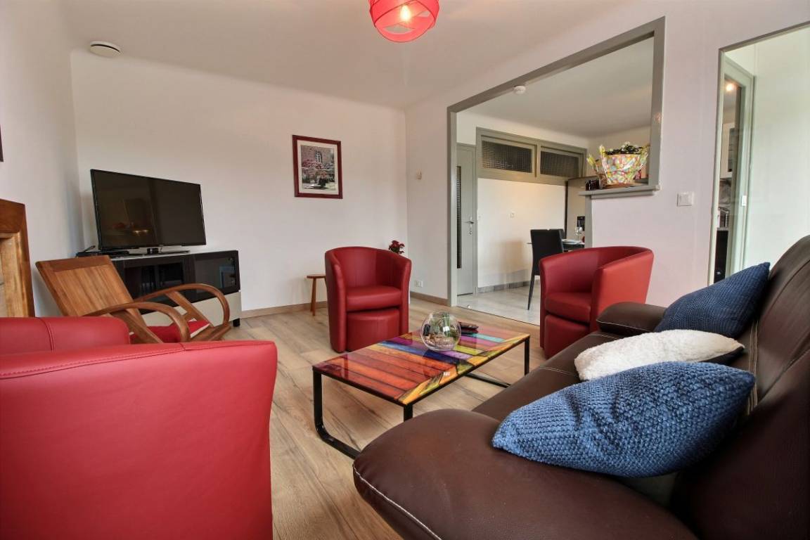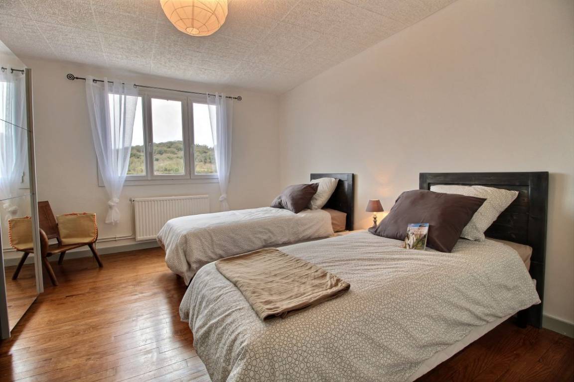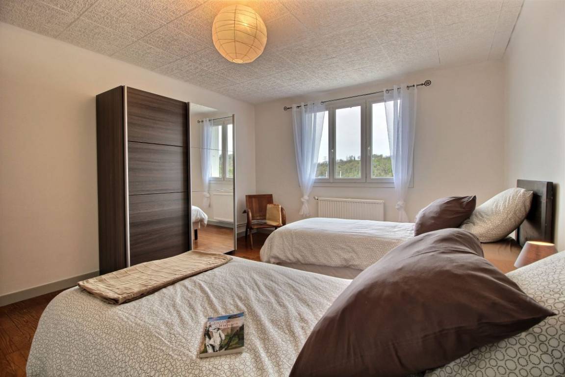 Diese Ferienwohnung bietet : Im Erdgeschoss: eine voll ausgestattete Küche mit Ess-Wohnzimmer, Abstellraum/Waschküche, ein Badezimmer und ein separates WC. Im 1. Stock : zwei Schlafzimmer (2 Betten 90x200) (1 Bett 160x200), eines mit eigenem Balkon mit Blick auf den Fluss Trieux. Ein Badezimmer mit Toilette. Im 2. Stock : ein kleines Wohn-Spielzimmer und ein Schlafzimmer (2 Betten 90x190). Garten von 200 m² auf der Rückseite des Hauses in Entwicklung. Parken entlang des Hauses für mehrere Fahrzeuge möglich.