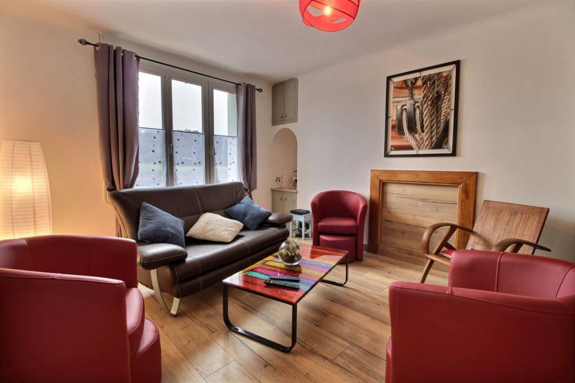 „Wir haben uns hier sehr wohl gefühlt. Die Wohnung ist hübsch und bestens ausgestattet, mit guten Betten. Die Vermieter wohnen nicht im Haus, sind sehr freundlich und jederzeit hilfsbereit. Die Lage ist wirklich ruhig, am Fluss Trieux, der sich hier infolge der Gezeiten ständig verändert. Dies ist interessant zu beobachten und ohne jede Geruchsbelästigung. Geschätzt haben wir auch den grossen Garten mit Sitzplatz hinter dem Haus. Aus dem bepflanzten Teil durften wir sogar etwas Gemüse ernten. Parkplatz problemlos vor dem Haus. Da wir zu zweit waren, haben wir das "Kinderparadies" im 2. Stock nicht gebraucht.“