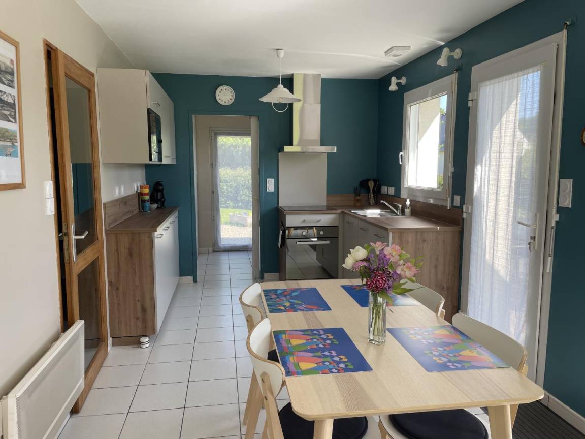 Dieses Ferienhausangebot enthält : Im Erdgeschoss: Ess-Wohnraum mit Einbauküche, Hauswirtschaftraum mit Wachmaschine und Lagerungsmöglichkeiten, 2 Schlafzimmer (1 Bett 160x200) (2 Betten 90x190), Bad und WC. Baby-Bett und Hochstuhl verfügbar. Privates Grundstück von 1000 m². Kurtaxe zahlbar vor Ort.
