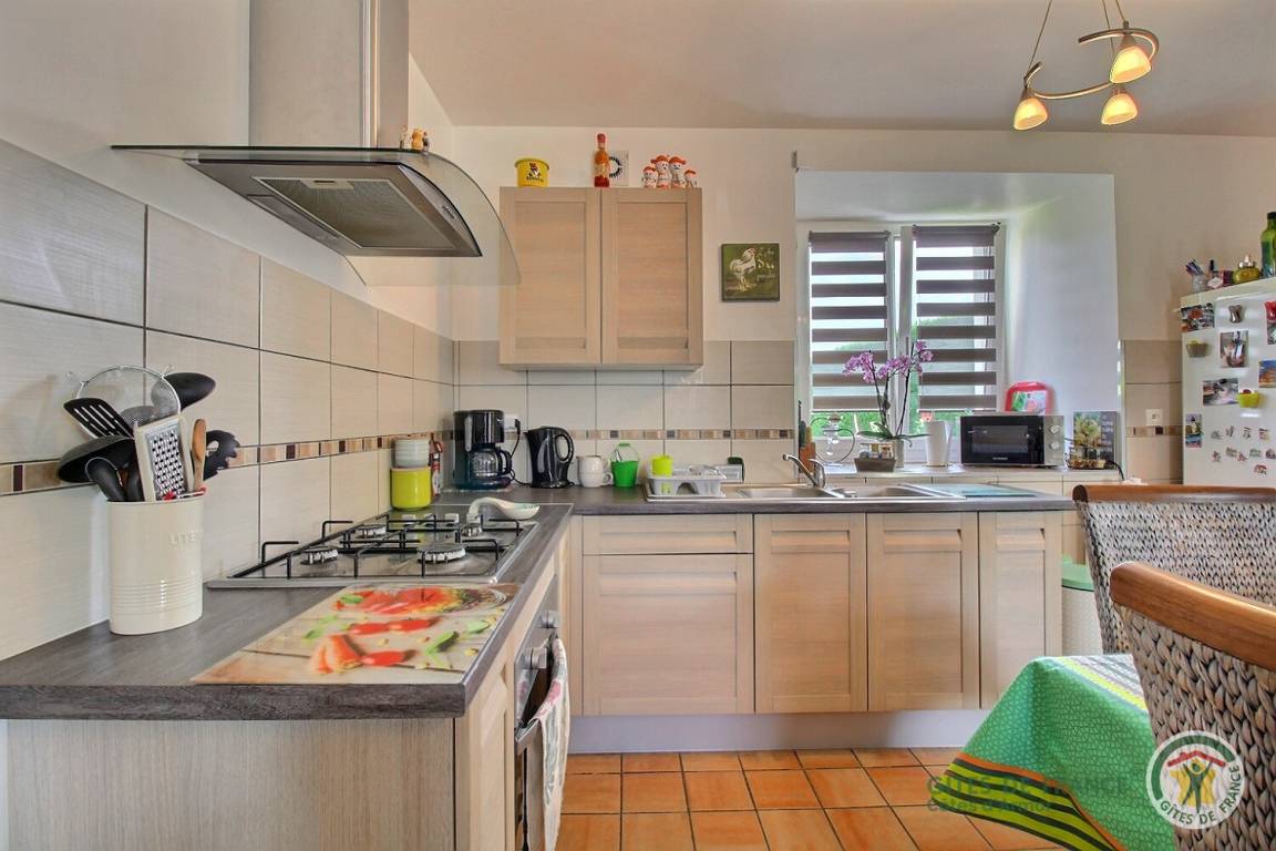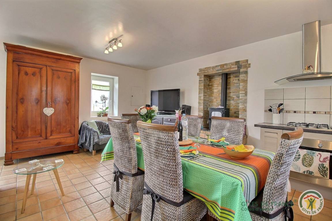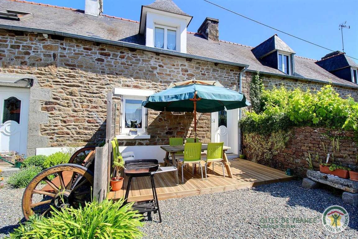 Ihre Ferienwohnung umfasst im Erdgeschoss: Wohnzimmer (Holzofen) mit Einbauküche, Badezimmer (Dusche und WC). Obergeschoss: 2 angrenzende Schlafzimmer (2 Betten 90x190) (1 Bett 140x190), WC mit Waschbecken. Terrasse von 11 m² und privater Innenhof von 50 m².