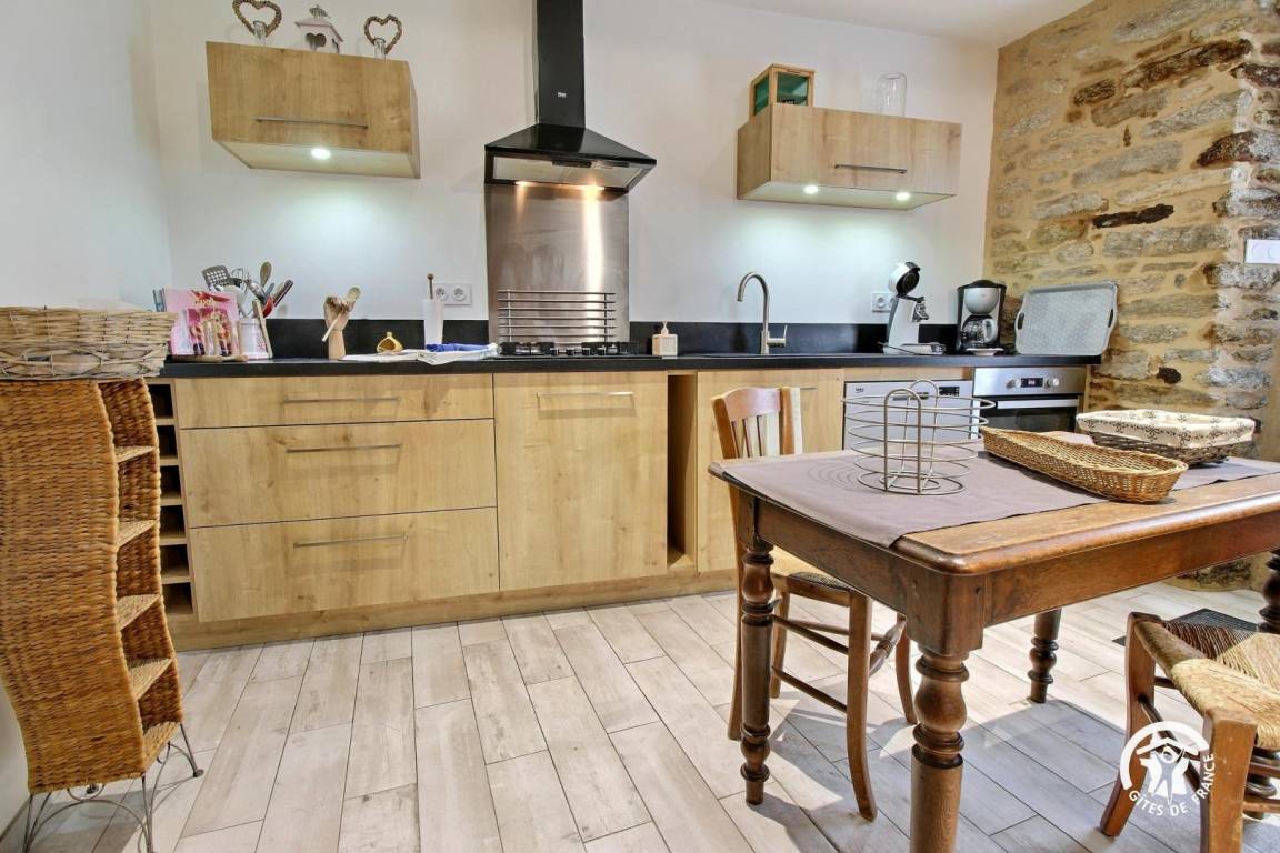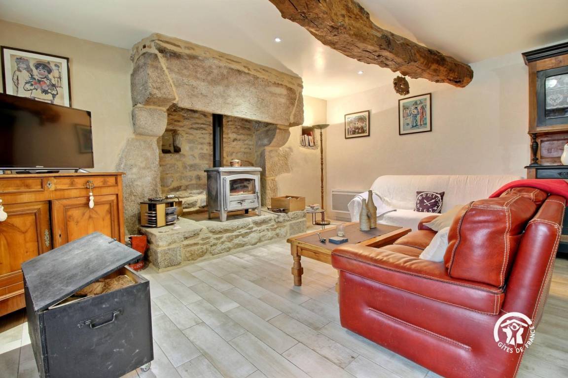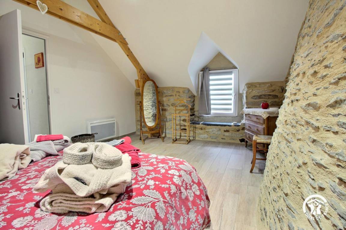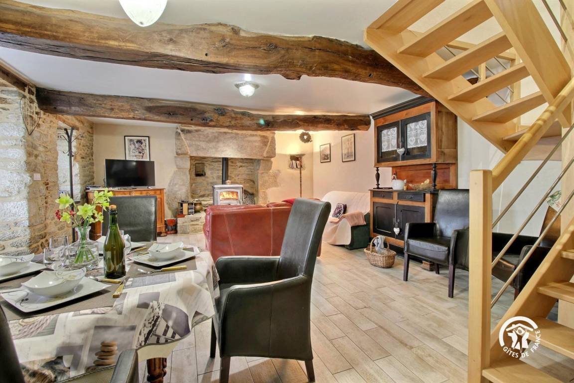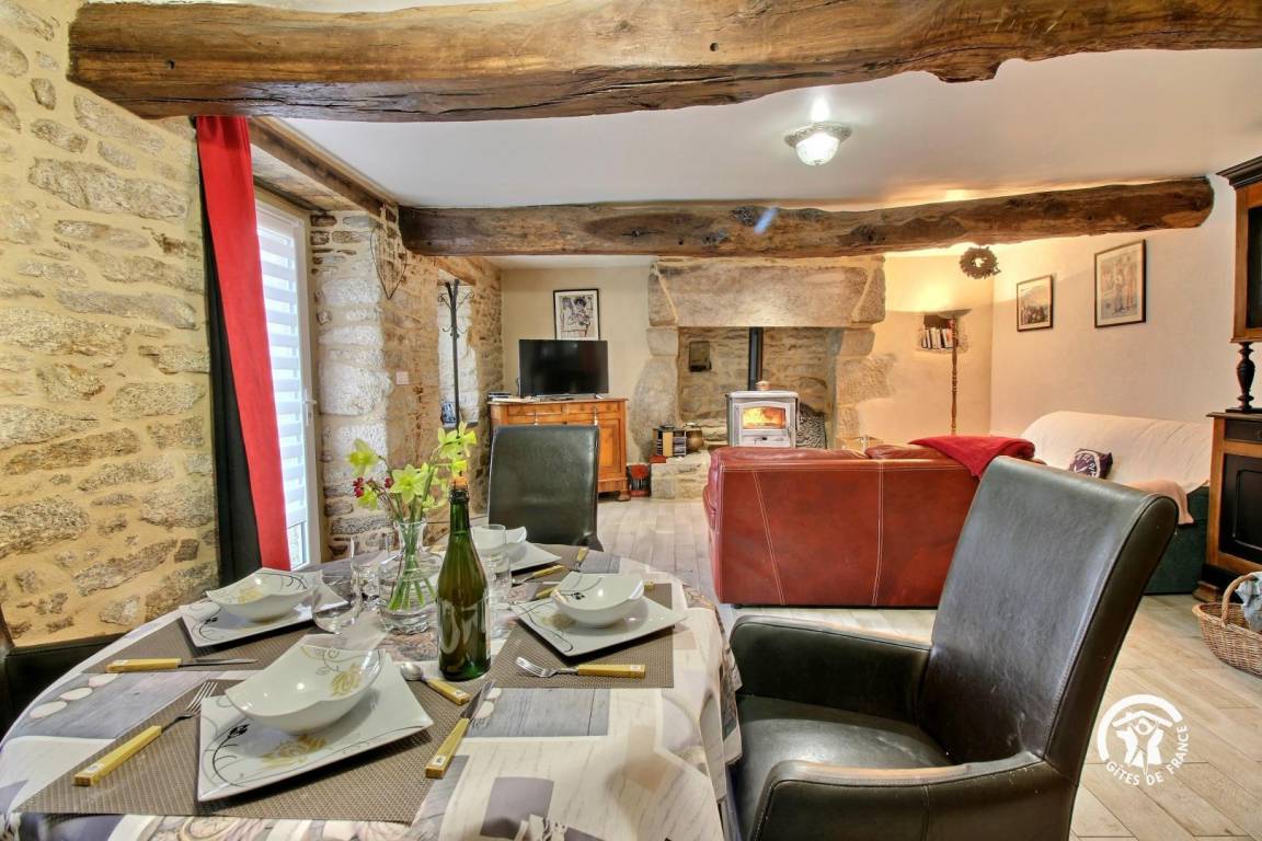 Eingebettet im Herzen der Landschaft von Questembertoise verbindet dieses Cottage den Charme alter Steine und freiliegender Balken mit einem Hauch von Modernität, um eine einladende und warme Atmosphäre zu schaffen.
