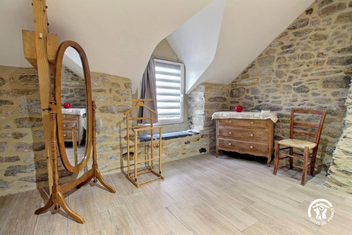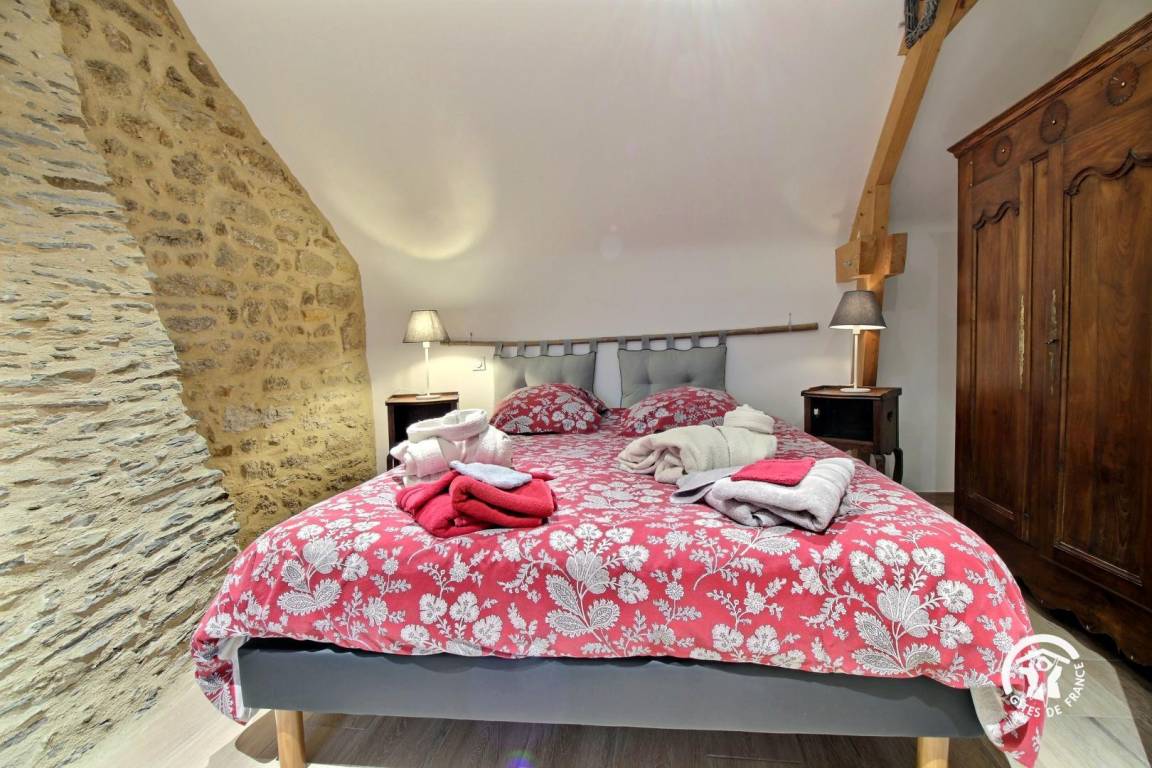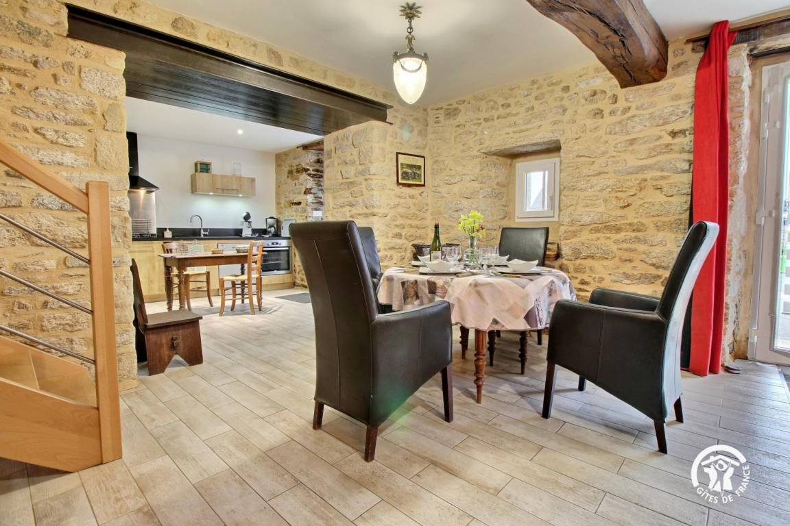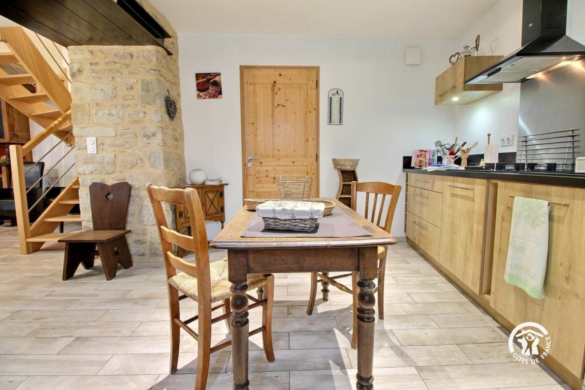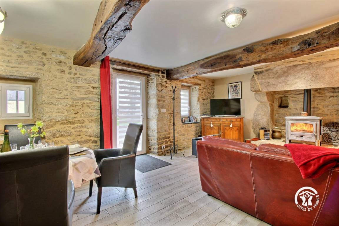 Eingebettet im Herzen der Landschaft von Questembertoise verbindet dieses Cottage den Charme alter Steine und freiliegender Balken mit einem Hauch von Modernität, um eine einladende und warme Atmosphäre zu schaffen.