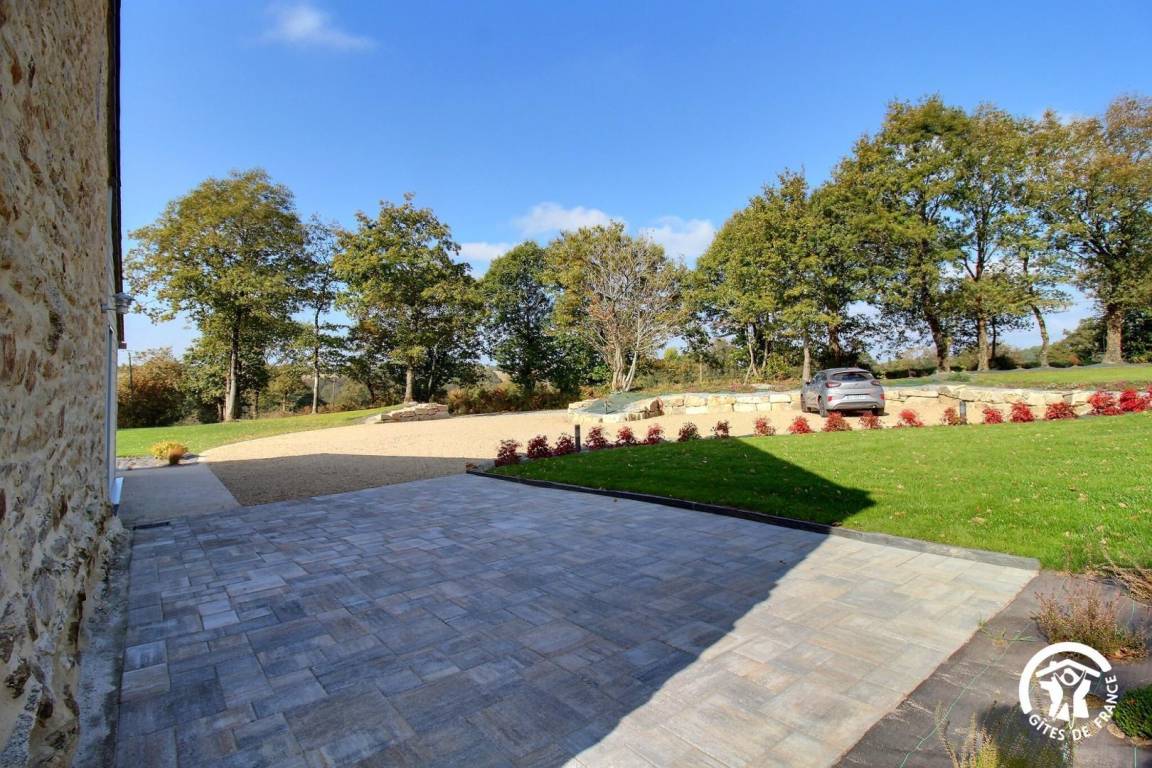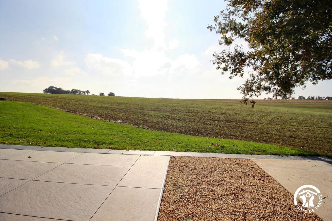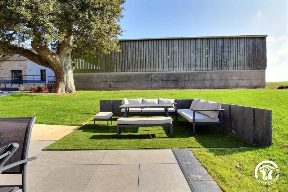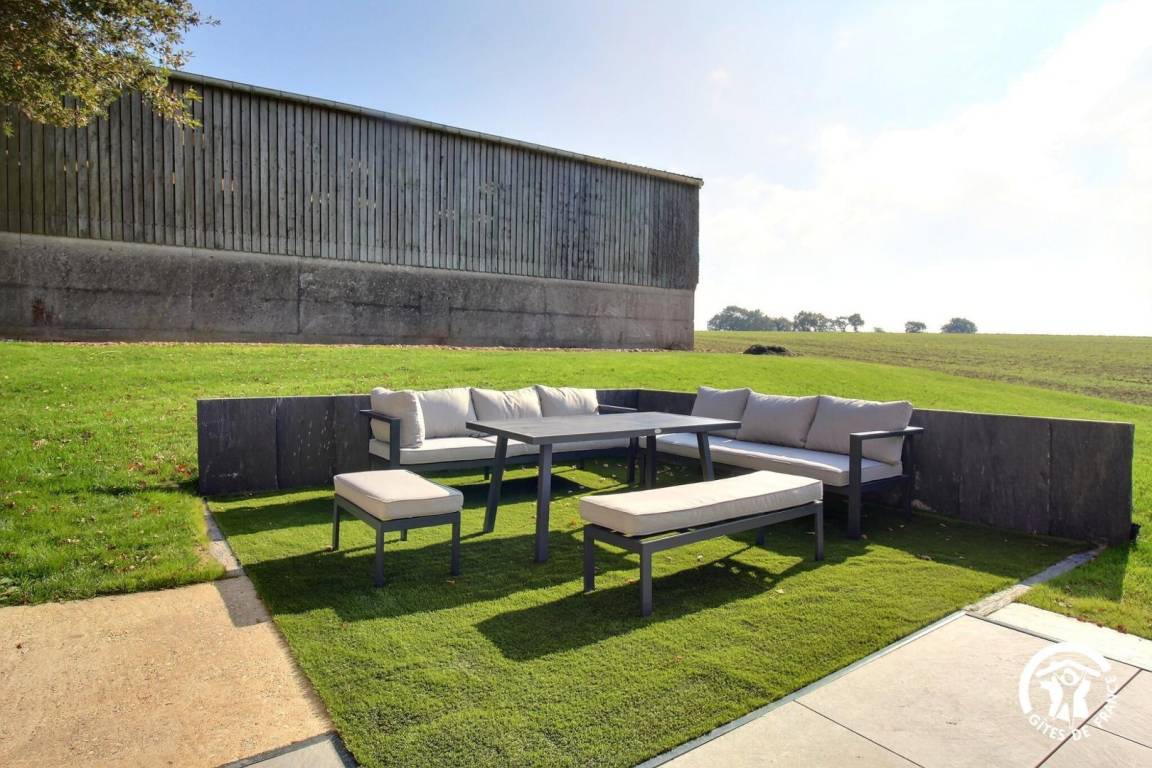 Der Garten öffnet sich zur Landschaft und bietet den idealen Rahmen für Mahlzeiten im Freien, zum Entspannen oder zum Spielen mit den Kindern.