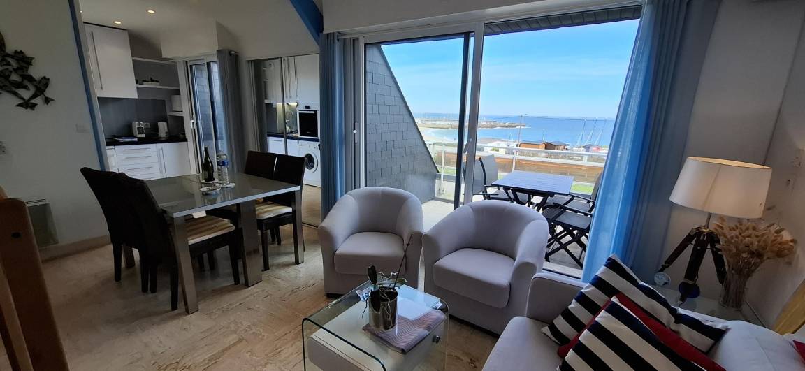„Séjour très agréable dans un duplex avec vue sur le port Haliguen. L'accueil du propriétaire est au delà de ce qu'on peut espérer tant il est sympathique et prévenant. J'ai beaucoup apprécié l'immeuble très calme, son emplacement, le confort et le bon goût de la décoration de l'appartement. Ces vacances m'ont apporté tout ce que j'en espérais malgré un temps mitigé.“