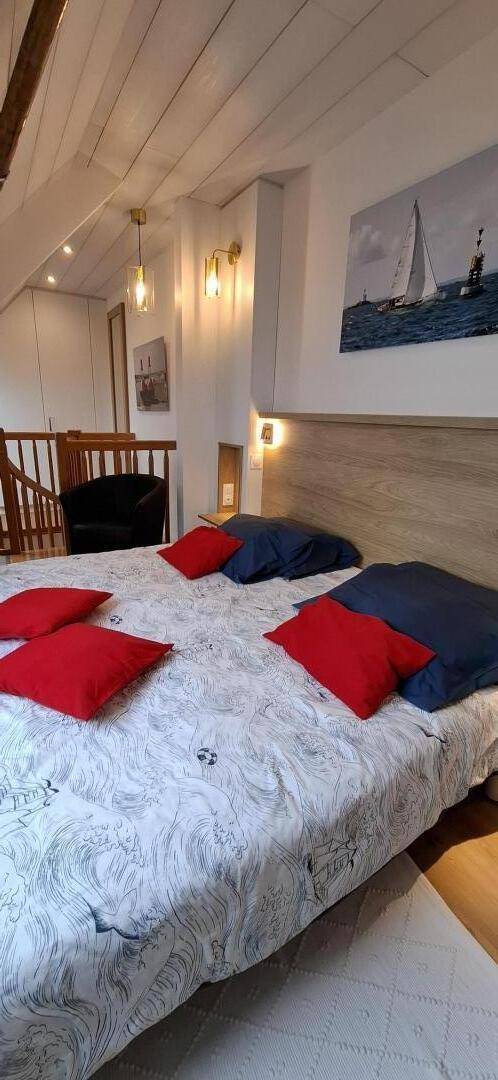 „Nous avons tout apprécié, et oui c'est possible. L'appartement tout confort, est joliment décoré, fidèle aux photos, et de plus très propre, nous a offert un joli écrin pour passer 15 jours de vrai détente. Nous avons apprécié de prendre nos repas sur la terrasse qui donne sur la mer, d'aller à pied, en deux minutes, à la plage du Porigo, et en 5 minutes au marché du port Haliguen, ainsi qu'aux restaurants proches. Appartement calme la nuit et une literie de premier choix. Merci aux propriétaires pour ce bien que nous conseillons. Nous y reviendrons.“