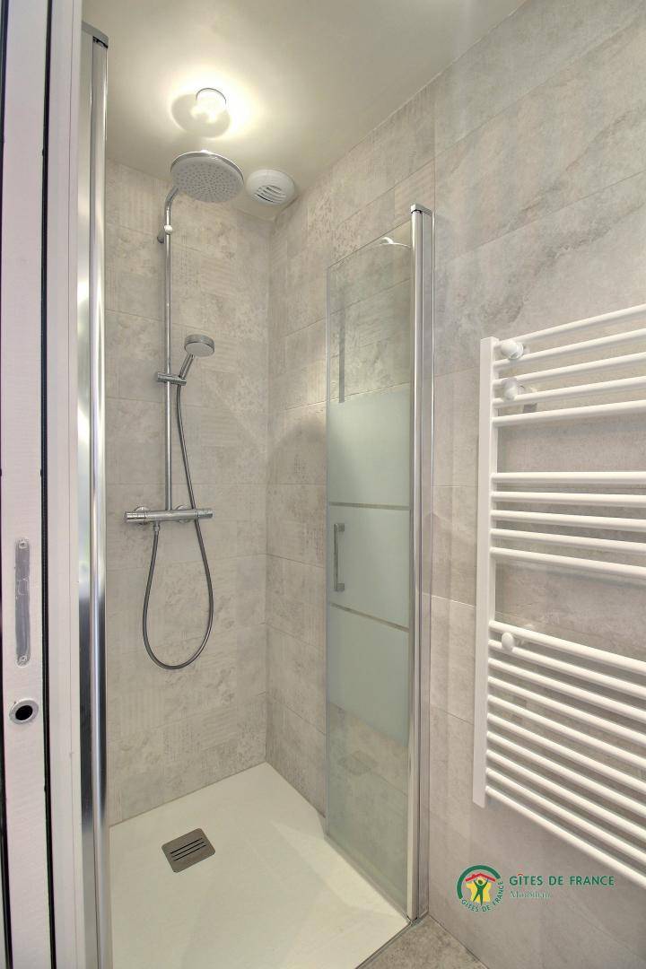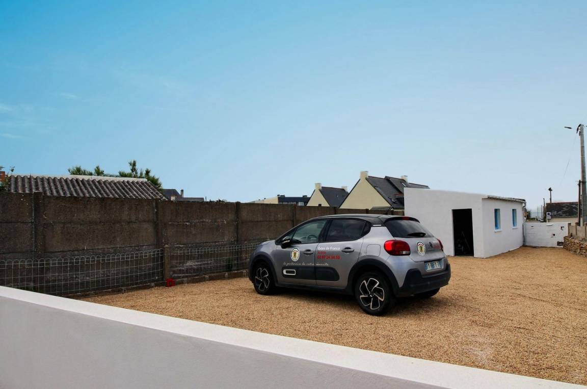 - Draußen: ein großer privater, geschlossener Raum mit einer Südterrasse (kleiner Meerblick) und einem gepflasterten Innenhof, ein Unterstand, der als Waschküche und Abstellflächen für Fahrräder dient (gemeinsam mit der anderen Gîte für den Zugang zur Waschmaschine). ), ein privater Parkplatz, der durch ein Tor auf dem Grundstück gesichert ist.