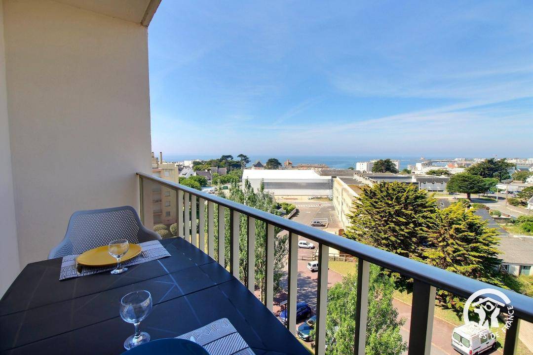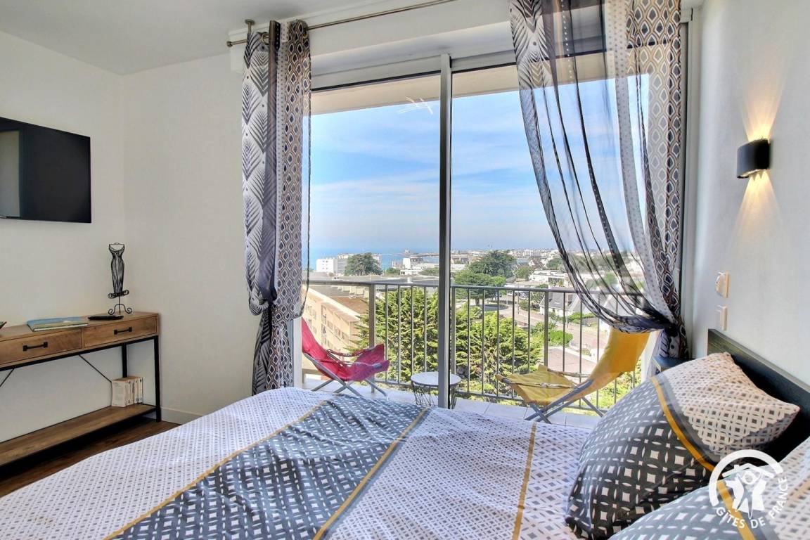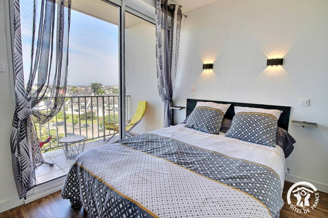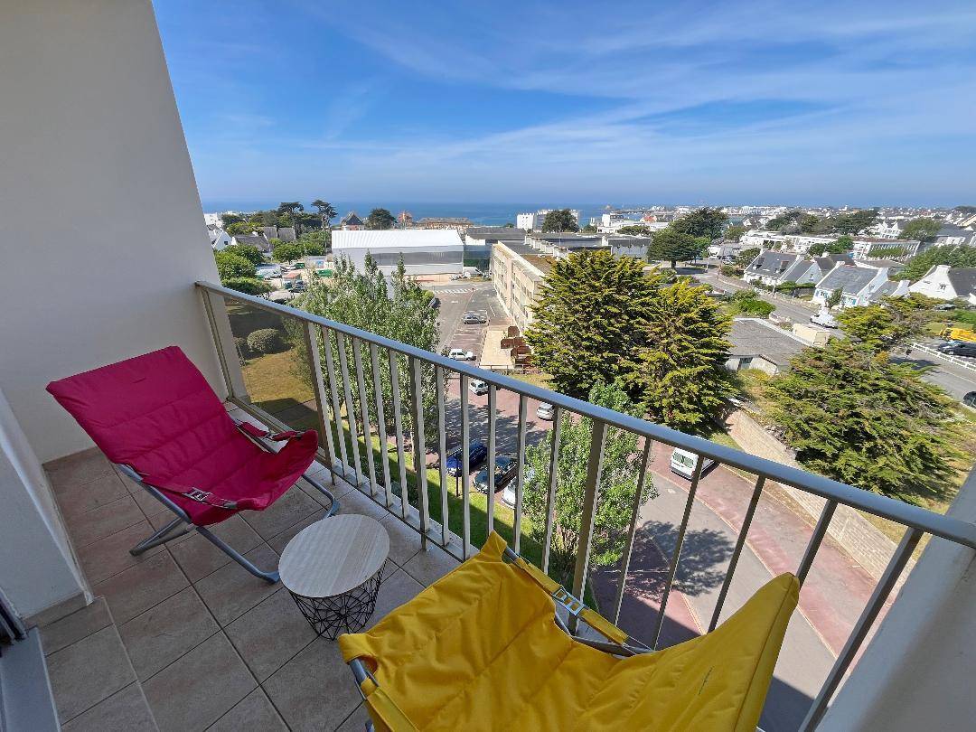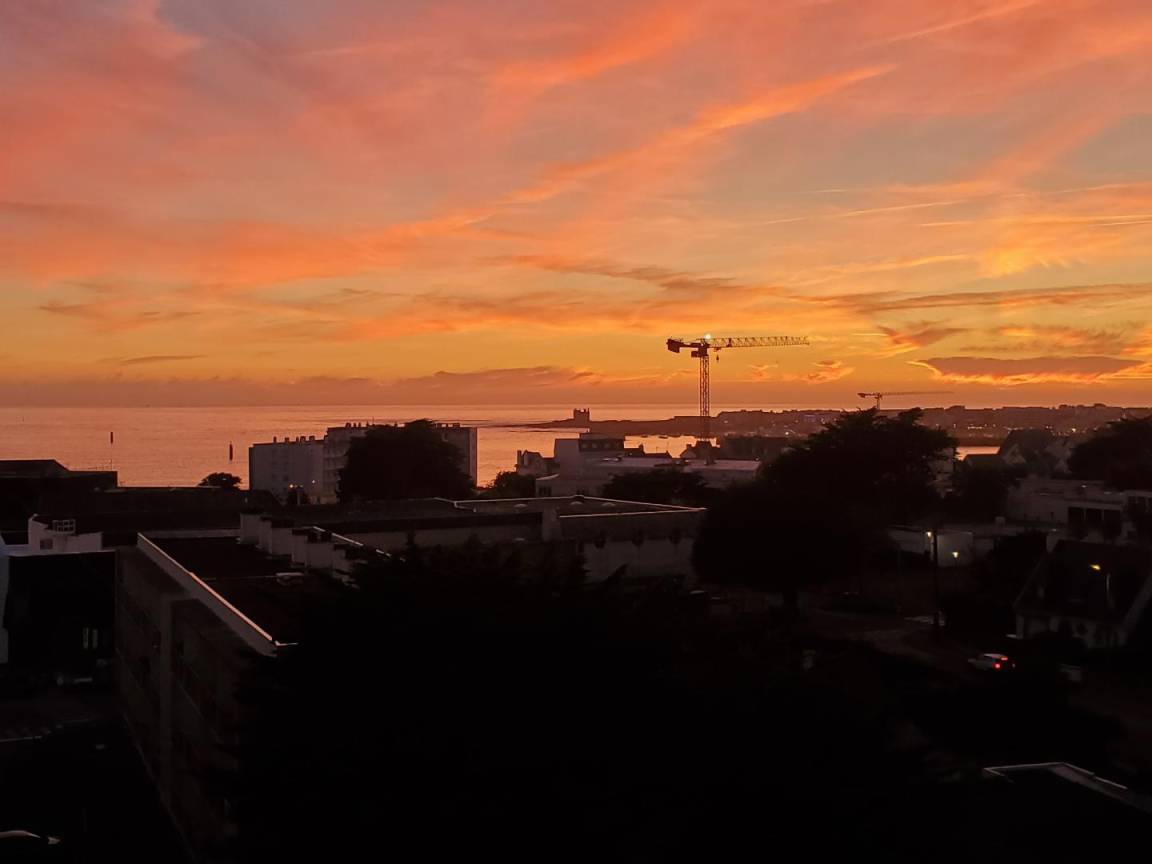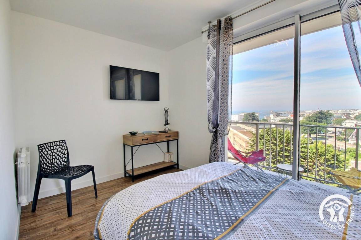 Diese helle und einladende Unterkunft wurde 2020 renoviert und bietet von jedem Zimmer aus einen Blick auf das Meer und die benachbarten Inseln (Belle-Île, Houat und Hoëdic). Zwei Balkone ermöglichen Ihnen, dieses außergewöhnliche Panorama in vollen Zügen zu genießen, darunter ein privater Balkon, der an das Schlafzimmer angrenzt. Lassen Sie sich von Ihrem Bett aus vom Meer und dem Kommen und Gehen der Wellen wiegen ... Mit seiner Westausrichtung ist dies der ideale Ort, um jeden Abend erhabene Sonnenuntergänge zu bewundern.