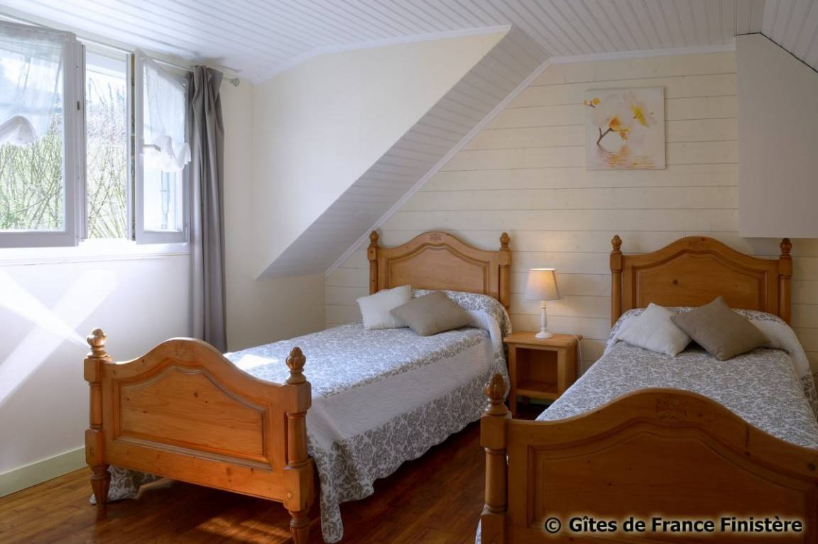 „Bonjour, nous avons choisi ce gîte pour être au calme et profiter d'un vrai repos! voeu exaucé! des propriétaires généreux, discrets et tellement gentils!Le jardin est formidable, il y a toujours un coin à l'ombre et le reste au grand soleil. Pour les courses LIDL est tout proche. Le gîte est très bien garni, rien ne nous a manqué. wifi parfait. 1frigidaire et 1 congélateur: Idéal pour les longs séjours en famille. nous avons jumelé les 2 lits simples pour avoir un couchage en 160; très bonne literie. wc à l'étage et aussi au rdc. nous avons visité Quimper, et nous recommandons le château de Keriolet, petite merveille! et la plage de Kervelen, pour déjeuner au Copacabana! Bonnes vacances aux locataires suivants! et un grand merci aux propriétaires bienveillants.“