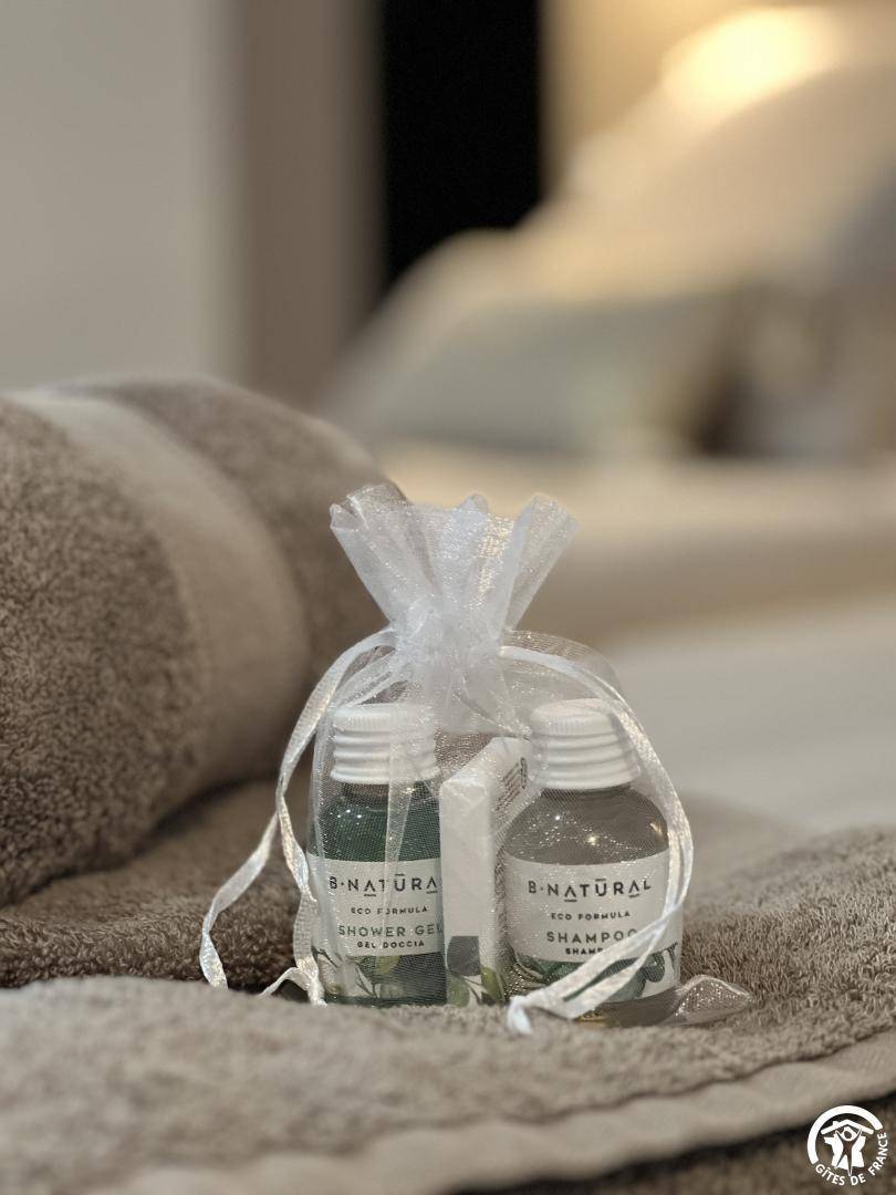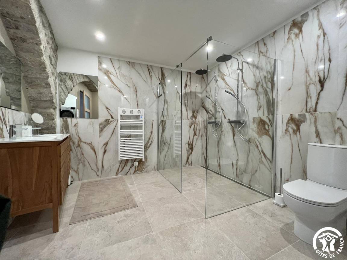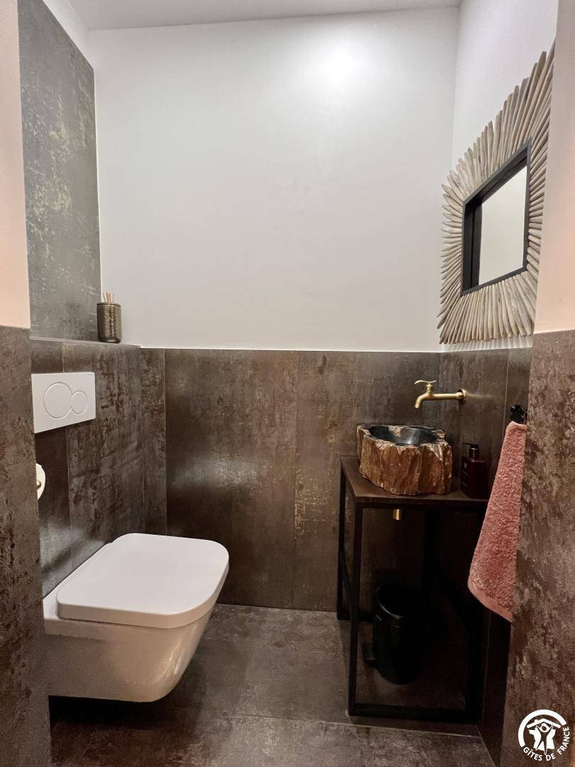 „Prestation haut de gamme, matelas, oreillers, linge de maison, les propriétaires ont investi dans de la qualité. Il ne manque rien. Tout est confort, le moindre petit détail est présent, gel douche, diffuseurs de parfum ce qui est très agréable, jolie vaisselle, déco tout est en harmonie. Habitation spacieuse.“