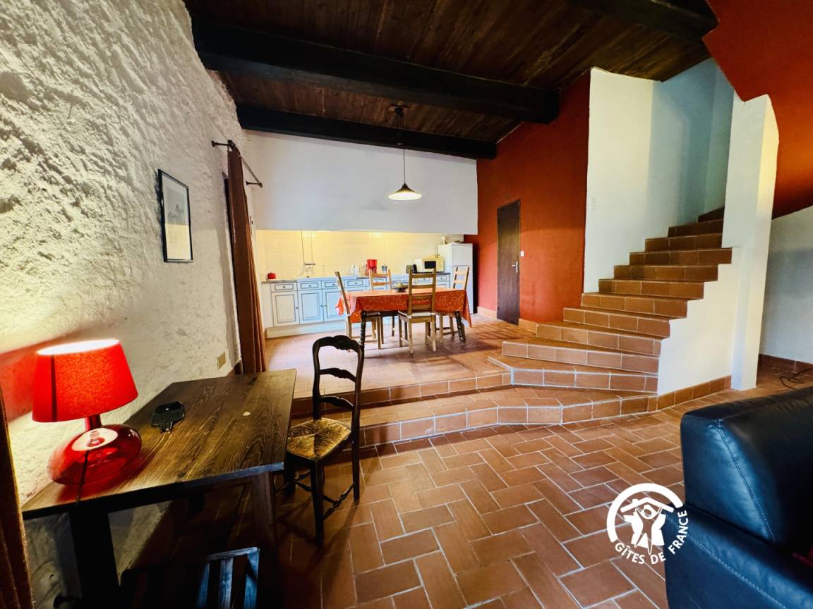 „Nous n'avons pas rencontré le propriétaire (boite à clés).Le séjour et surtout le salon sont sombres, pas assez éclairés. La terrasse avec une superbe vue est l'atout principal de ce gite dans un village isolé.“