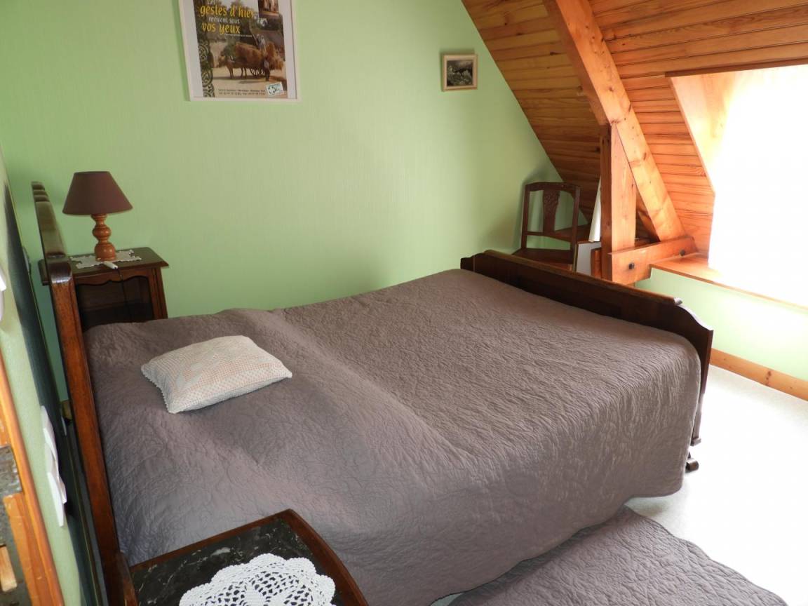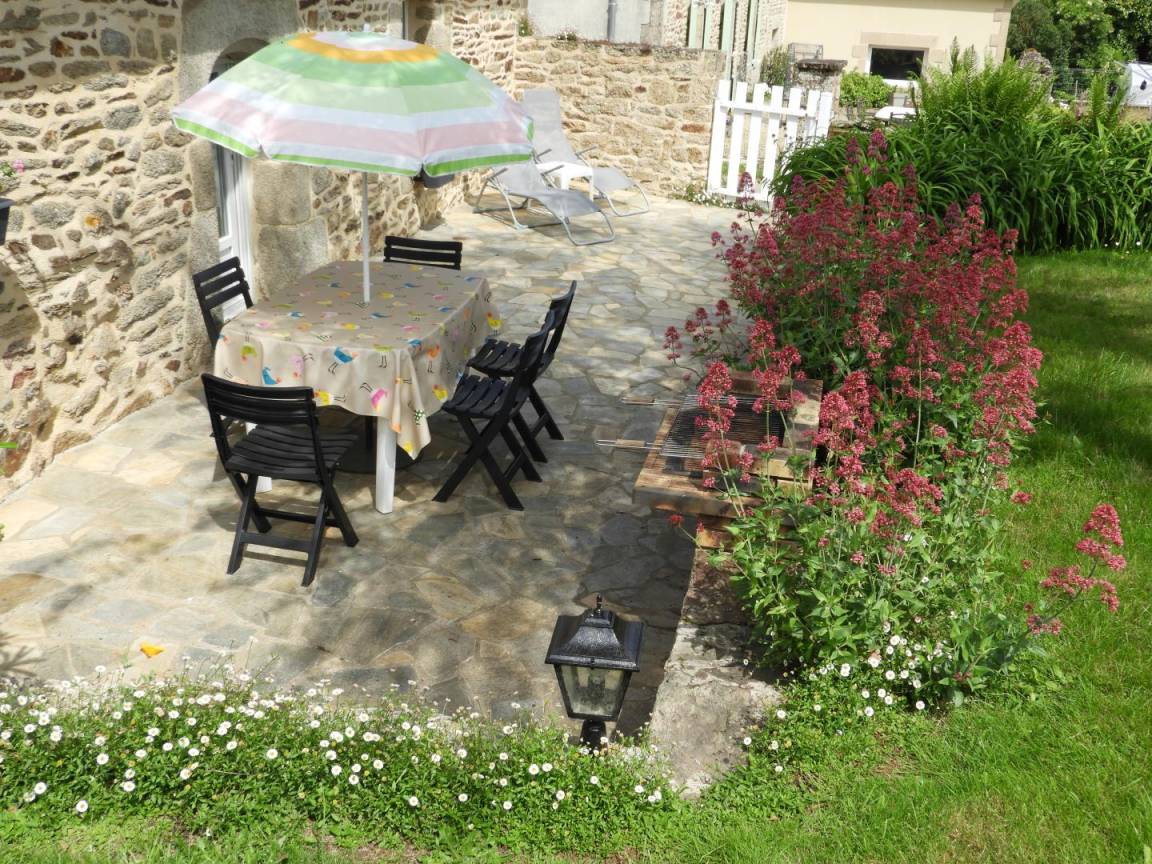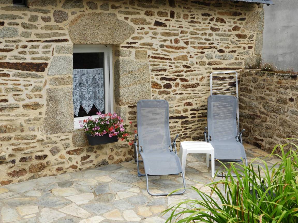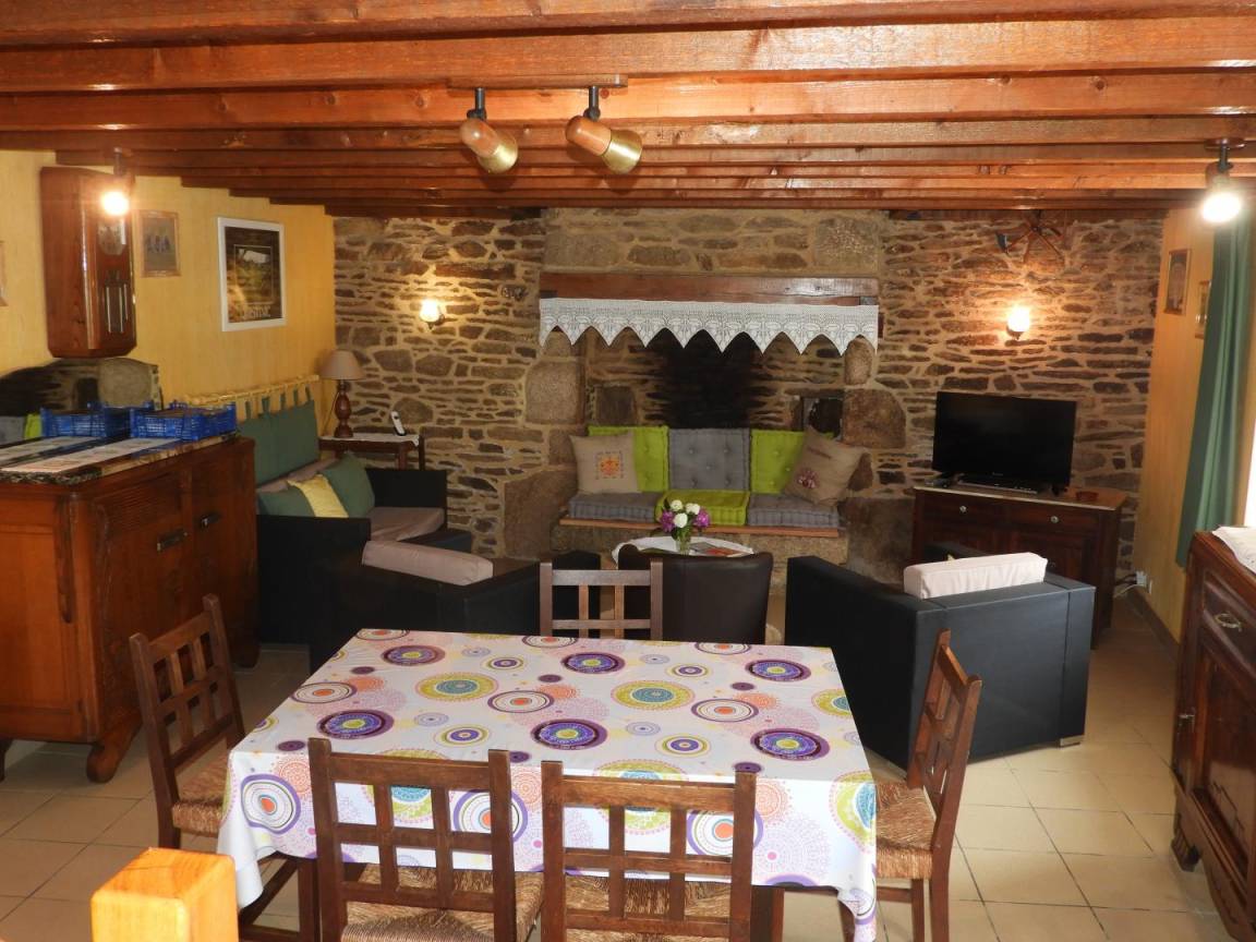 Detached gite in a hamlet near the owner's home, 1km from QUISTINIC. Living room/kitchen corner/sitting area (DVD player). 2 bedrooms (2 double beds, 1 single bed, 1 baby cot), Shower/WC, WC, electric heating. Private grounds 400m² including 100 m² of enclosed lawn, terrace, garden furniture and BBQ. GR341 on site, GR38 at 2 Km (pedestrian tracks). Old farmhouse that has been restored. Footpaths. Near the River Blavet (towpath, angling) and the reconstructed village of Poul Fétan with thatched cottages dating from the 15th century.