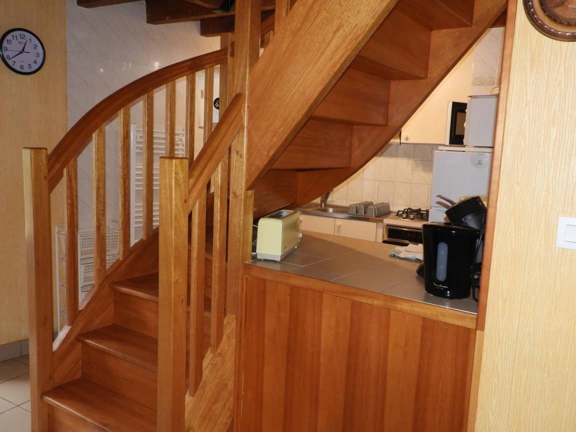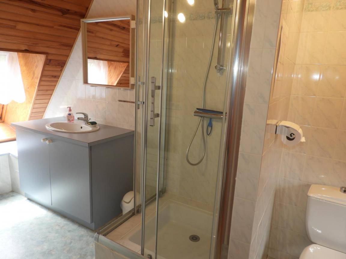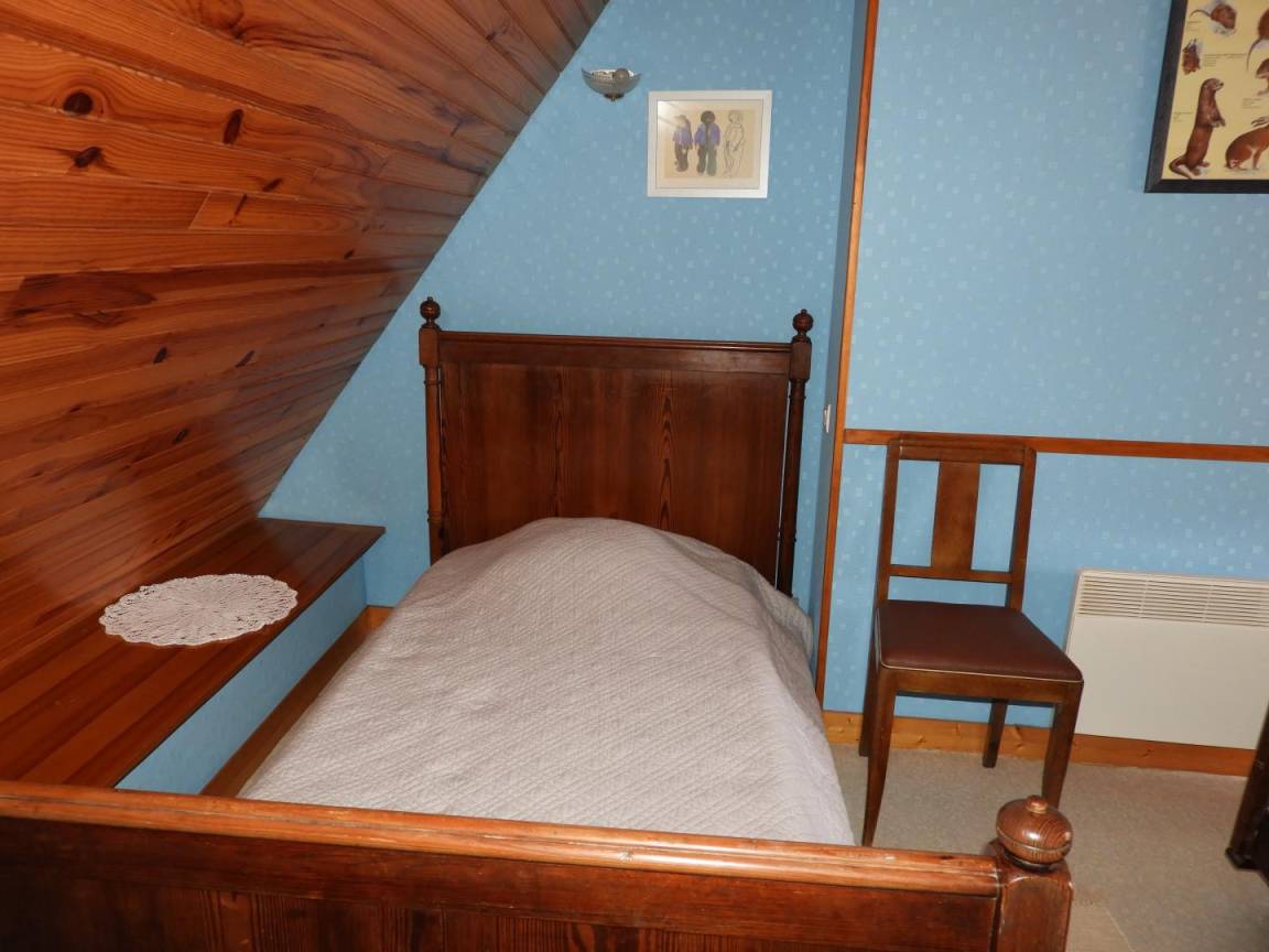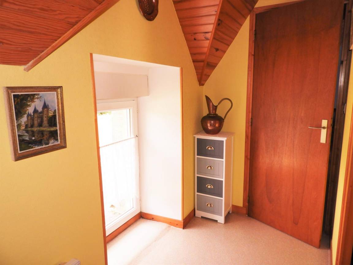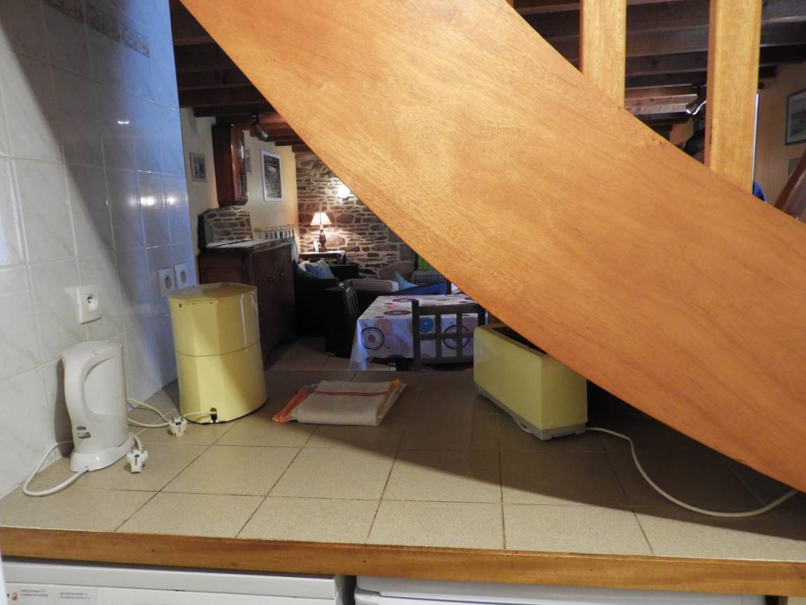 Detached gite in a hamlet near the owner's home, 1km from QUISTINIC. Living room/kitchen corner/sitting area (DVD player). 2 bedrooms (2 double beds, 1 single bed, 1 baby cot), Shower/WC, WC, electric heating. Private grounds 400m² including 100 m² of enclosed lawn, terrace, garden furniture and BBQ. GR341 on site, GR38 at 2 Km (pedestrian tracks). Old farmhouse that has been restored. Footpaths. Near the River Blavet (towpath, angling) and the reconstructed village of Poul Fétan with thatched cottages dating from the 15th century.
