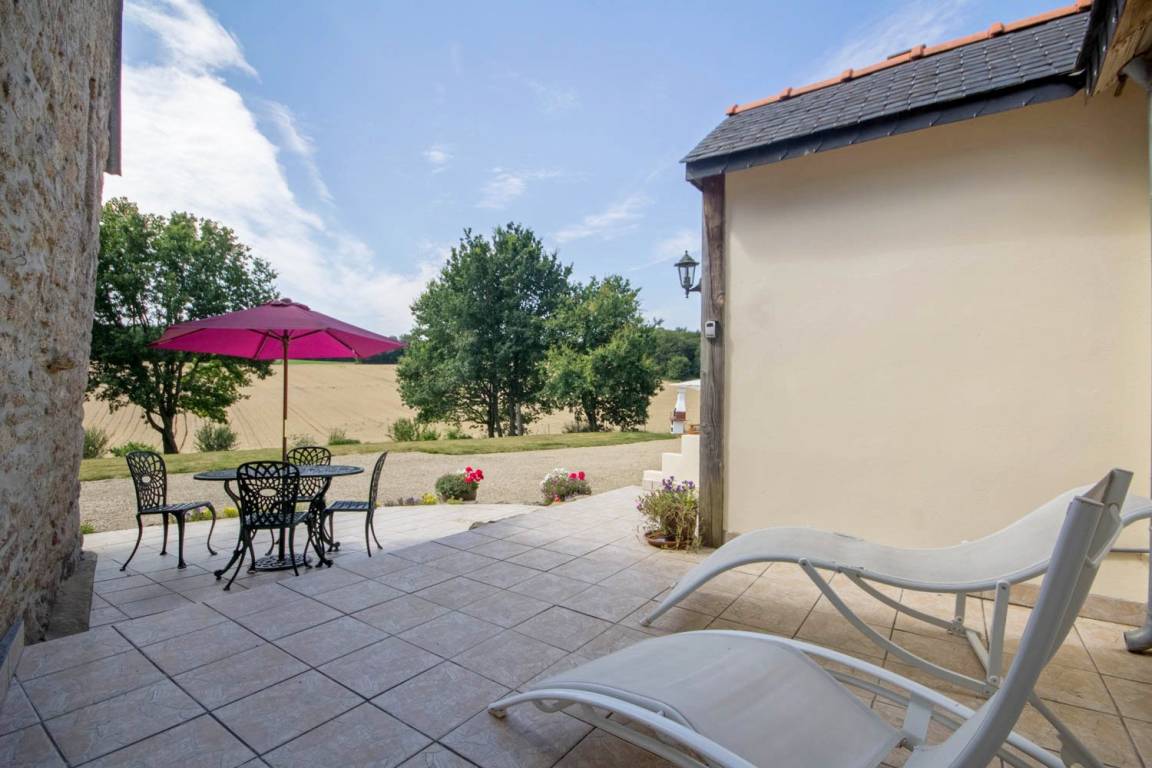 - Eine private Kiesterrasse mit Blick auf den Garten und die umliegende Landschaft – ideal zum Sonnenbaden und um den spielenden Kindern zuzusehen