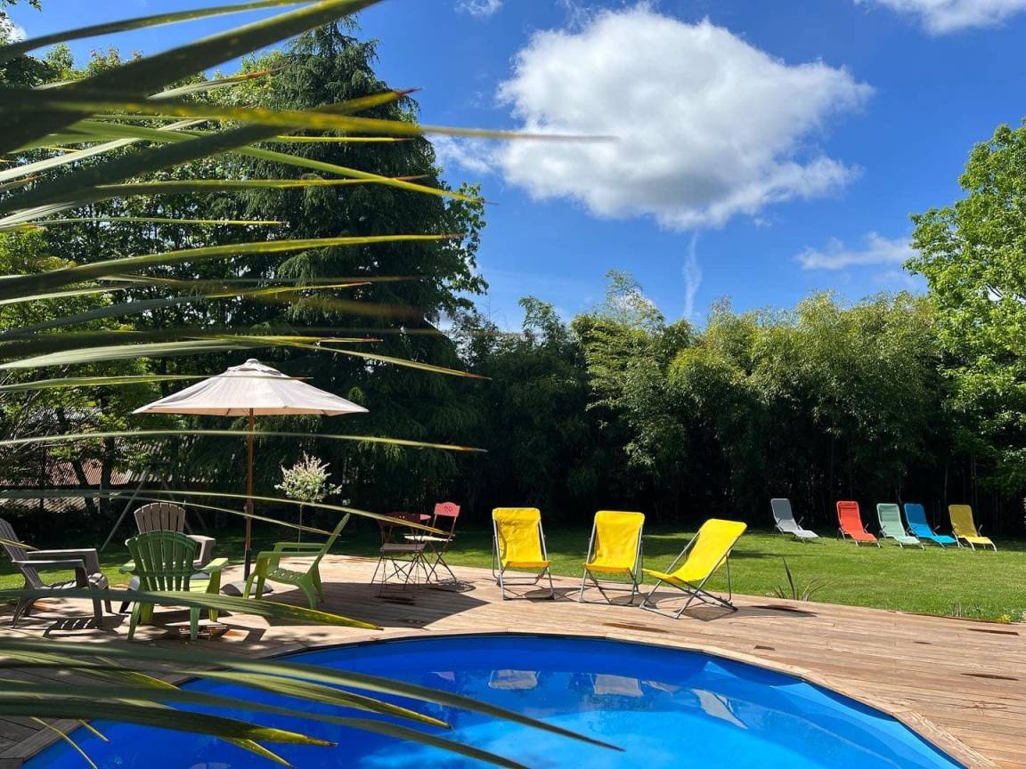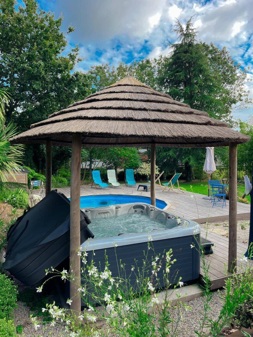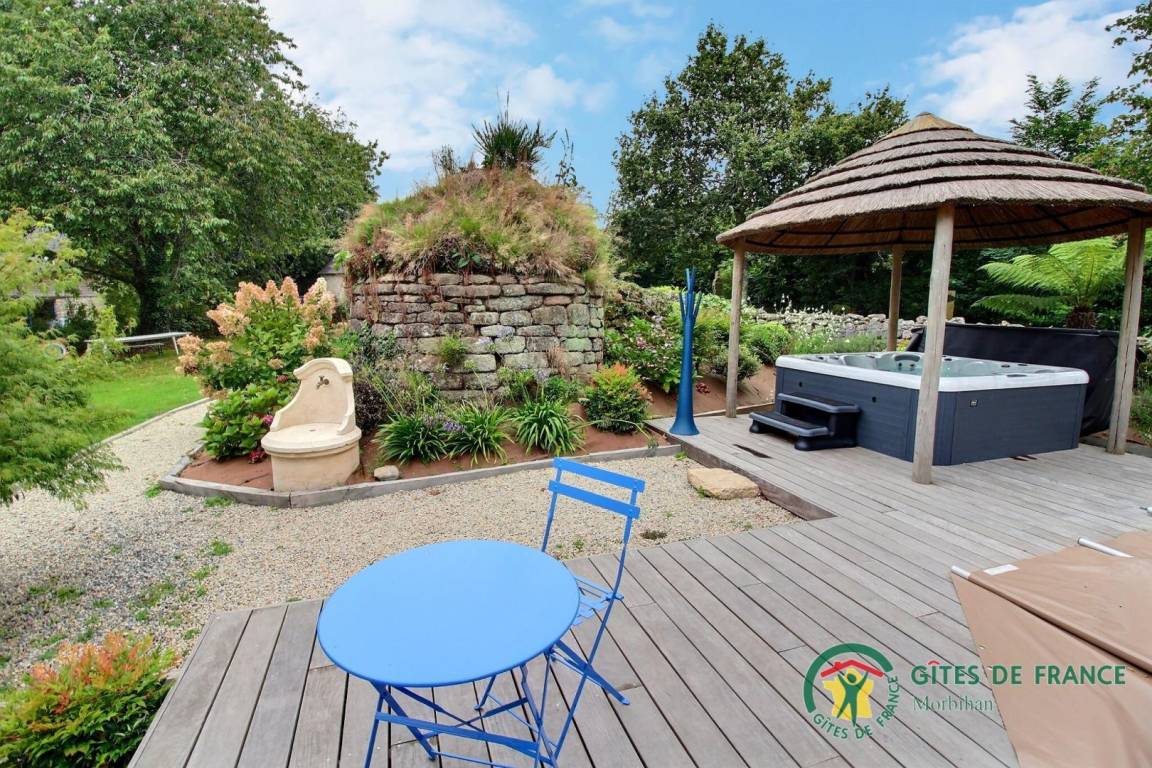 „Belle longere dans un cadre très verdoyant, très beau jardin, super pour les enfants. De nombreux jeux de plein air disponibles, et en plus piscine et jacuzzi…propriétaires très sympathiques“