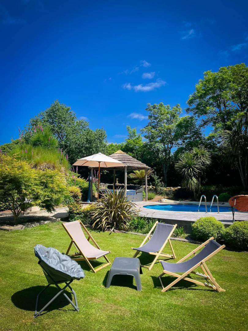 Ein großer Pluspunkt sind die schön angelegten Außenbereiche, der unbeheizte Swimmingpool mit Terrasse, das 2 Stunden am Tag geöffnete Spa, der große offene Garten und der private Parkplatz.