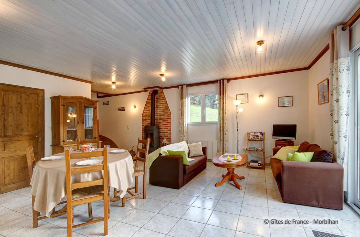 Zwischen Feldern und Wäldern in nur 200m Entfernung zum Fluss Blavet: freistehendes Ferienhaus, ideal für Liebhaber von Ruhe und echter Erholung. Wanderern wird das hügelige Blavet-Tal mit seiner schönen Natur und den Treidelwegen gefallen. EG: Esszimmer/Kochecke/Wohnzimmerecke mit Ofen, WC. Stockwerk: 2 Zimmer (1 Doppelbett, 2 Einzelbetten und 1 Babybett), Bad mit Dusche, 2 WC. Elektrische Heizung. Terrasse, Gartenmöbel, Grill, eigener Garten, durch den ein kleiner Bach fließt.