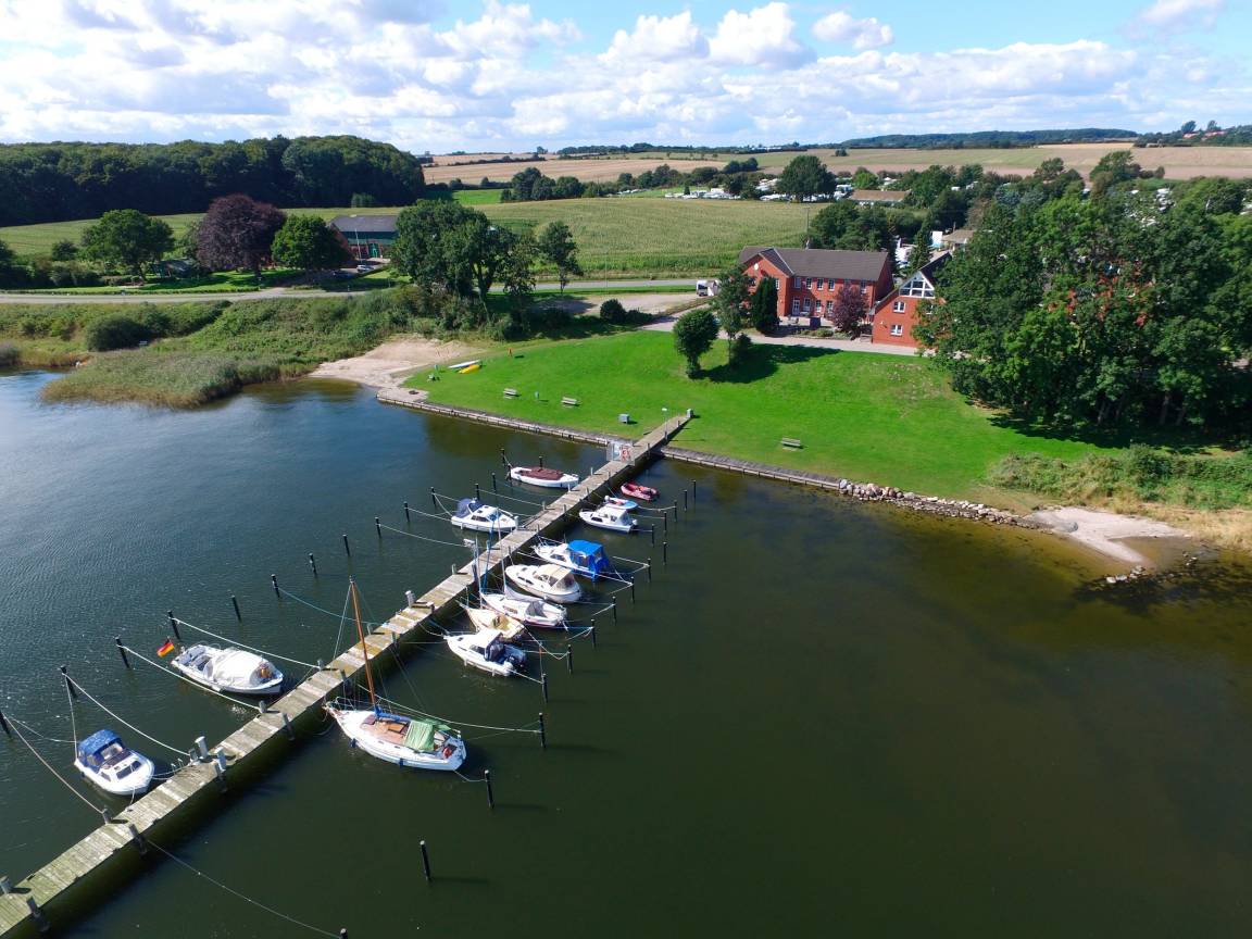Unser Appartementhaus liegt in Karschau in unmittelbarer Nähe zur Schlei. So befindet sich auf unserem Außengelände, neben der großzügigen, gemeinschaftlichen Außenterrasse auch eine große Liegewiese mit einem kleinem Badestrand und direktem Wasserzugang.