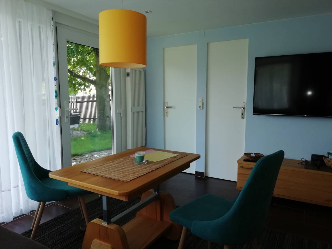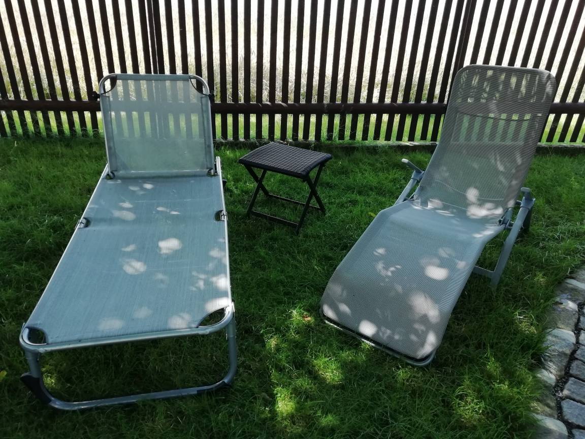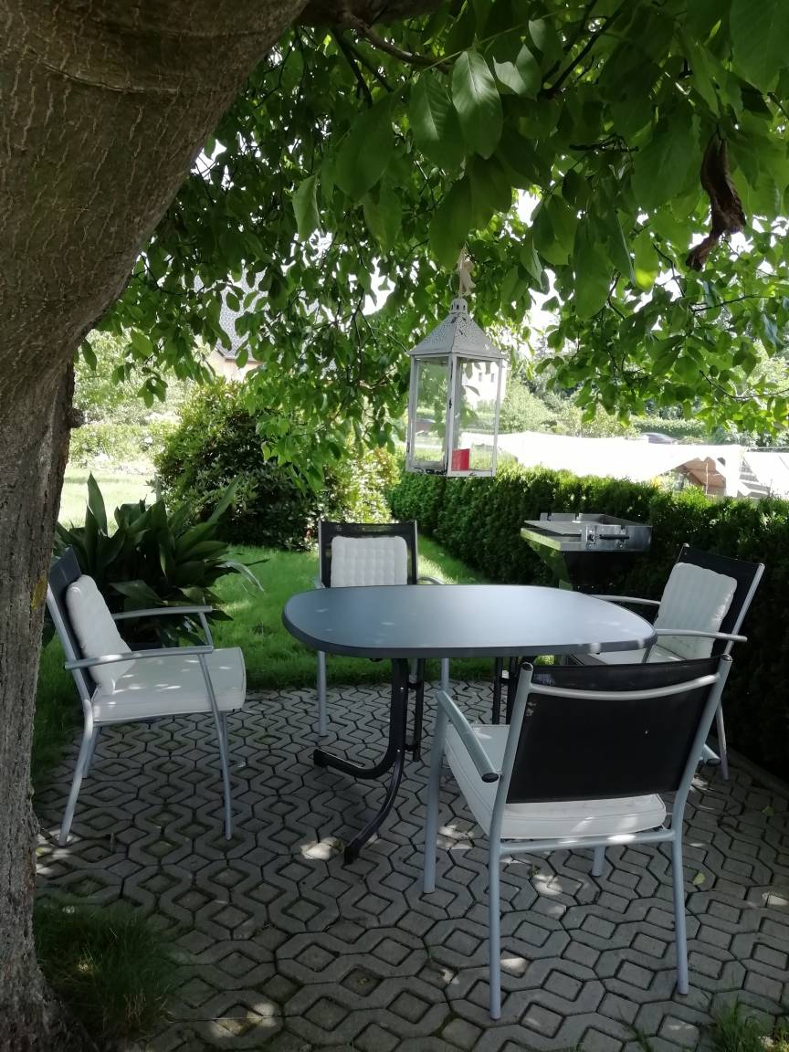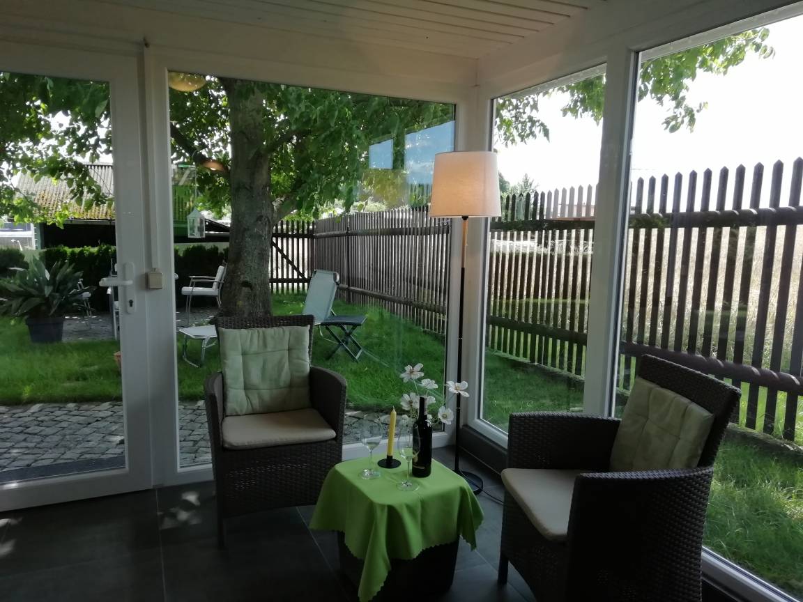 Hier ist Platz zum Grillen und Chillen. Grill ist vorhanden. Grillkohle ist gegen ein kleines Entgelt zu bekommen. Es gibt einen Sitzplatz unter einem großem schattigen Nussbaum, zwei Wellnessliegen und einen kleinen Wintergarten für kühlere Abende. Der Bungalow ist neu ausgestattet mit einer vollständig eingerichteten Küche mit Geschirrspüler, einem Wohnzimmer mit großem TV und einer Schlafcouch, einem Bad mit Dusche und WC und zwei kleinen Schlafzimmern. Damit ist der Bungalow auch ideal für ein Paar, das getrennte Schlafzimmer wünscht. Im Regal stehen alle Bücher von Hera Lind, also genügend Lesestoff für den Urlaub. WLAN-Anschluss ist kostenlos. Eine Elektroheizung im Wohnzimmer ist vorhanden. In der Küche gibt es nur eine einfache Infrarotheizung.