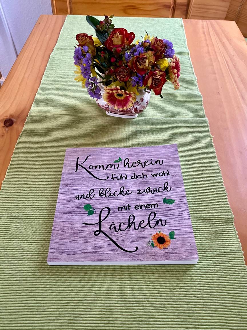Waschmaschine und Trockner sind bei längeren Aufenthalten oder auf Anfrage im nicht zugänglichen Kellerbereich verfügbar. Eine Hausmappe mit nützlichen Informationen zu Freizeit, Einkauf und Notfall ist bei Ankunft stets aktualisiert auf dem Tisch. Als Wertschätzung Ihres Besuches in unserer schönen Region finden Sie eine Flasche leckeren Küchler Wein als Willkommensgruß im Kühlschrank. Eine gewisse kulinarische Grundausstattung für den Ankunftsabend und den nächsten Morgen stellen wir ebenfalls bereit.