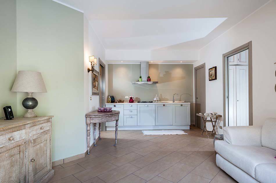 Wohnküche: Esstisch, Spülmaschine, Kühlschrank, Tiefkühler, Herd, Italienische Kaffeemaschine, Sofa, WiFi Internet, TV, Ausgang auf den Garten.