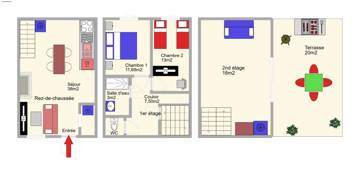 89 m² Gîte ∙ 2 Schlafzimmer ∙ 4 Gäste