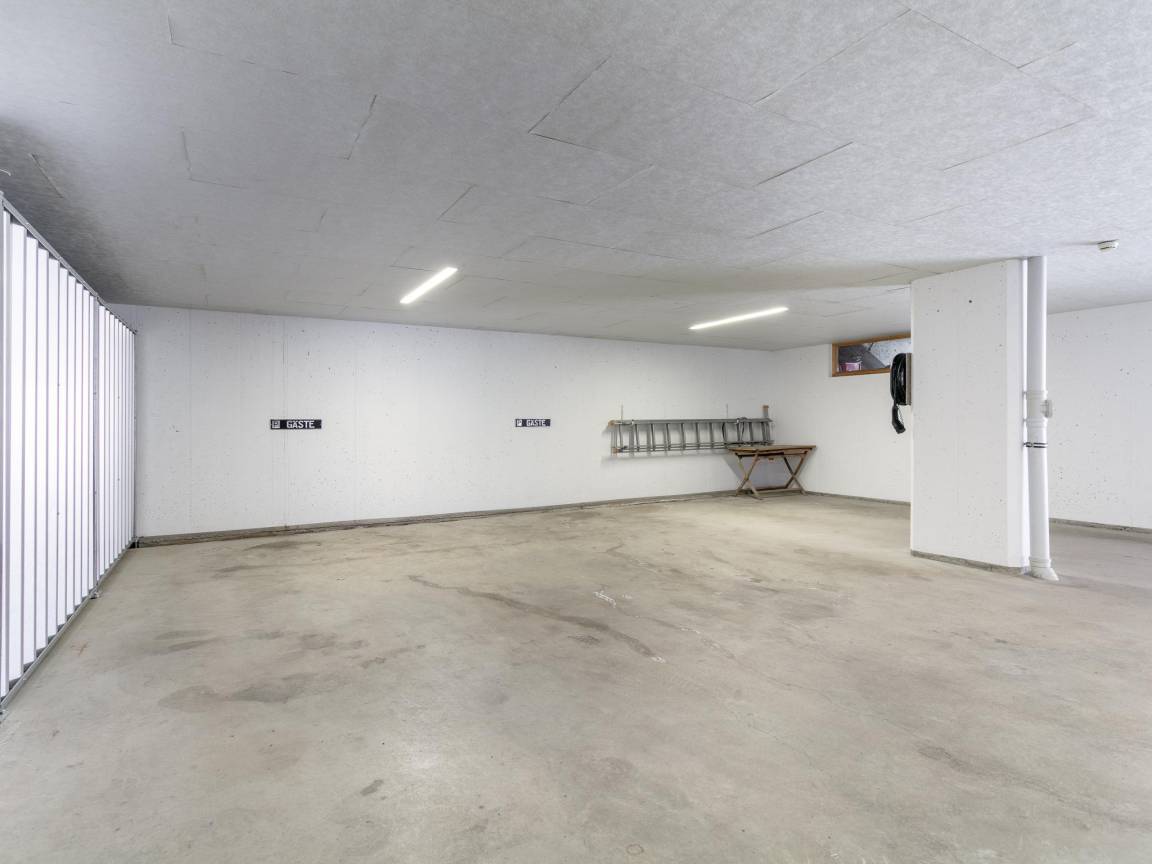 Layout : Parterre: Skiabstellraum mit Skischuhheizung , 1x Garage(6 Parkplätze) mit 2x Lademöglichkeit für Elektroautos(Type 1) , 1x Parkplatz(Gemeinschaftliche Nutzung mit dem Eigentümer)