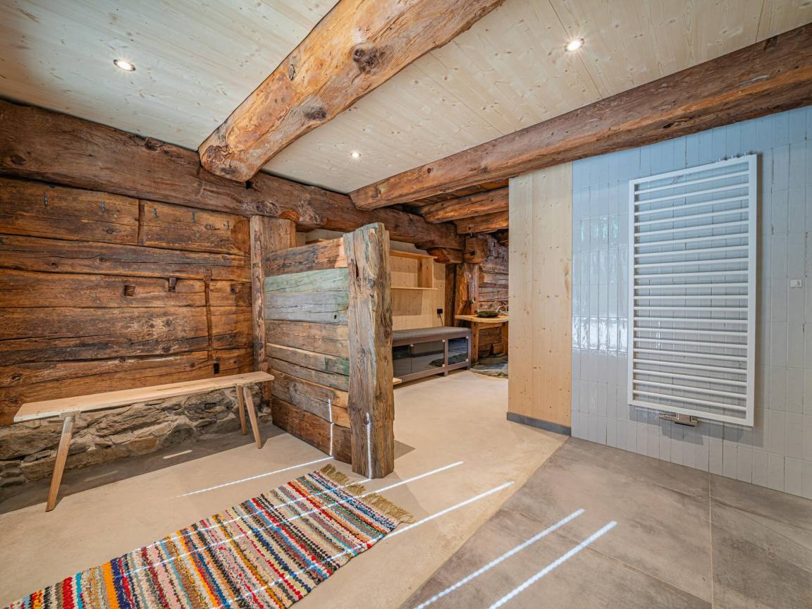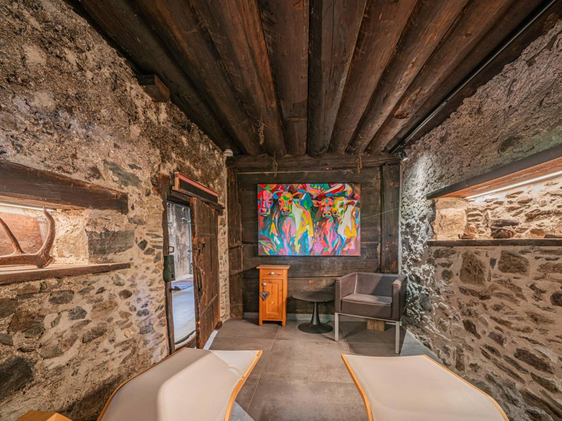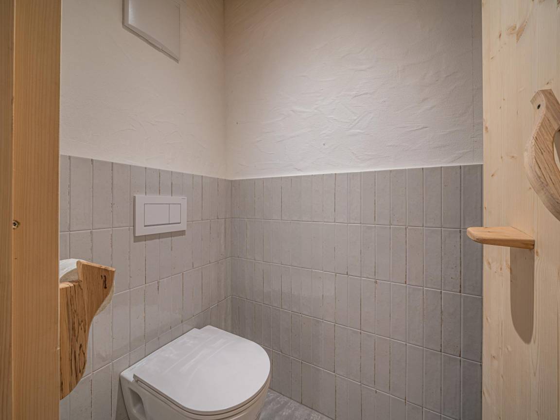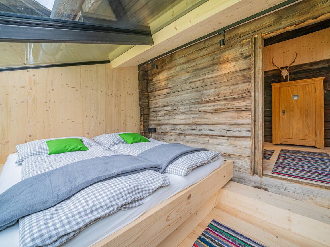 „Es handelte sich um einen fast 350 Jahre alten, denkmalgeschützten Bauernhof, der außerordentlich liebevoll und zu Ferienunterkünften umgestaltet wurde. Dabei wurden geschickt die modernen Ausstattungen und Gestaltungen mit den historischen Details und Bauteilen kombiniert. Wir wohnten im ehemaligen Hauptgebäude mit der alten Küche und mit der noch mit originaler Holzvertäfelung und Dielenboden versehenen Bauernstube. Praktisch war hier die Speisendurchreiche zur Küche. Der über die Zentralheizung angebundene alte Ofen machte die Stube sehr gemütlich. Im Erdgeschoss befand sich noch ein Rückzugs-Ruheraum mit 2 Relax-Liegen 2 Wirtschaftsräume mit Lager- und Abstellmöglichkeiten sowie mit Waschmaschine und einem zusätzlichen WC. Von außen ist nochmal sehr praktisch ein beheizter Raum für Ski-Schuhe und -sachen zugänglich. Im Obergeschoss befinden sich die Schlafräume, die jeweils über ein eigenes Bad mit Dusche und WC verfügen. Zwei Schlafräume sind mit einem Doppelbett jeweils unter einer Panoramaverglasung versehen. Die zwei anderen Schlafräume verfügen über eine 2. Ebene mit je zwei weiteren Betten somit über je 4 Betten. Wir haben wunderbar geschlafen und uns hier außerordentlich wohl gefühlt. In der ehemaligen benachbarten Scheune befindet sich eine weitere Ferienwohnung für insgesamt 8 Personen und noch eine Ferienwohnung für 2 Personen. (evtl. Kind auf Sofa). Diese Wohnungen konnten wir uns anschauen - sie wurden ebenfalls mit bester moderner Gestaltung und viel Liebe zum Detail in die historische Bausubstanz integriert. Hier wurde im Erdgeschoss der ehemaligen Scheune auch eine moderne Saunalandschaft eingebaut. Es gibt hier eine Finnische Sauna, 4 Ruheliegen, Dusche, WC und einen kleinen Außenbereich zum Abkühlen. Alles ist wiederum mit viel Glas, neuem und alten Holz wunderbar in die alte Scheune integriert. Das Ensemble wird vervollständigt von einem großen Carport für 5 PKW, angebautem Skiraum sowie weiteren PKW-Stellplätzen. Für den Sommer gibt es auch außen schöne Terrassen mit Sitzmöglichkeiten. Die Übergabe mit dem Vermieter verlief sehr nett und völlig unproblematisch. Die Kommunikation verlief unproblematisch über Telefon und WhatsApp. Da wir über Silvester da waren, stellte er uns auch eine Möglichkeit und Brennholz für ein Lagerfeuer sowie eine Partybox zur Verfügung.“